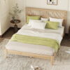 Unwind within an aura of classic elegance through the lovely Fleur platform bed. Made in Malaysia, this mid-century piece is crafted from sturdy wood. Its rounded headboard is embellished with beautifully woven rattan for a stunning backdrop that radiates charm. The Fleur requires assembly and utilizes wood slats for mattress support, eliminating the need for a box spring. Tapered legs complete the look, making the Fleur platform bed a remarkable bedroom centerpiece. Overall Bed: 65.00″ W x 83.30″ D x 41.9″-47.00″ H; Max Mattress Size Allowed: 61.00″ W x 81.10″ L; Recommended Mattress Thickness: 8.00″ H; Height from floor to top of slats: 11.40″ H; Height from floor to top of footboard: 12.60″ H; Distance between each slat: 4.90″; Overall Headboard: 65.00″ W x 0.8″ Thick x 41.9″-47.00″ H; HB Panel: 23.80″H; Distance between each height adjustmnet hole: 2.50″; Distance betweeen bottom of HB Panel and Top of Bedframe: 6.90″-12.00″; Bedframe Clearance: 7.50″ H;