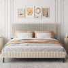 Convey a calm, relaxing ambiance in your bedroom with the lovely Sennae platform bed. Made in Malaysia, this bed is constructed from sturdy wood. The headboard is padded with plush foam and upholstered in smooth polyester fabric for exceptional comfort when sitting up in bed. The Sennae requires assembly and features wood slats for mattress support, which eliminate the need for a box spring. Angled legs lend a charming, mid-century feel, making the Sennae platform bed a delightful addition to any bedroom. Overall Dimensions: 43.30″ High x 81.40″ Wide x 83.20″ Deep; Height from Floor to Top of Footboard:14.10″; Inside Dimensions(Mattress Size): 78.00″ Wide x 81.10″Deep; Headboard Dimensions: 81.40″ Long x 19.10″ Wide x 1.40″ Thick; Headboard Height (w/o legs): 19.10″; Headboard Leg Height: 24.20″; Distance between each Slat: 3.50″; Height from Floor to bottom of Side Rail: 8.30″; Bed frame legs: 9.60″ High;