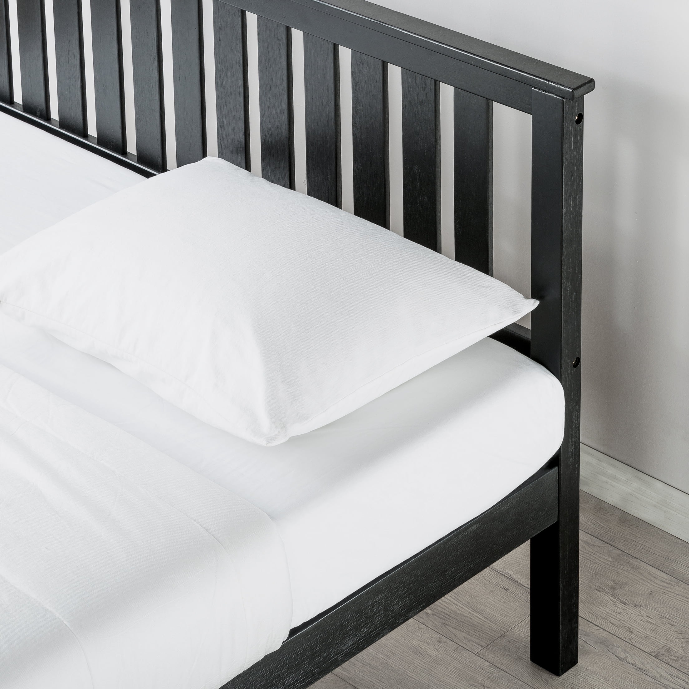 Best Price Mattress Marley solid wood platform bed frame is made with real Acacia wood in a natural open-grained, Ebony Black finish. We have added a modern paneled headboard to one of our bestselling frames to create a sturdy and stylish solid wood platform bed. Enjoy durable and lasting support with this bed’s solid wooden frame and slats, no box spring needed. The slats include non-slip tape to help keep your mattress safely in place. The Marley is also constructed to be noise-free with velvet padding between the slats and the frame. Marley’s higher profile allows for 10 inches of under bed storage to make the most use of your bedroom space. Our beds ensure quick and easy assembly with everything you need included in the package and no additional tools required. Best Price Mattress bed frames come with a 5-year manufacturer’s warranty against defects.
