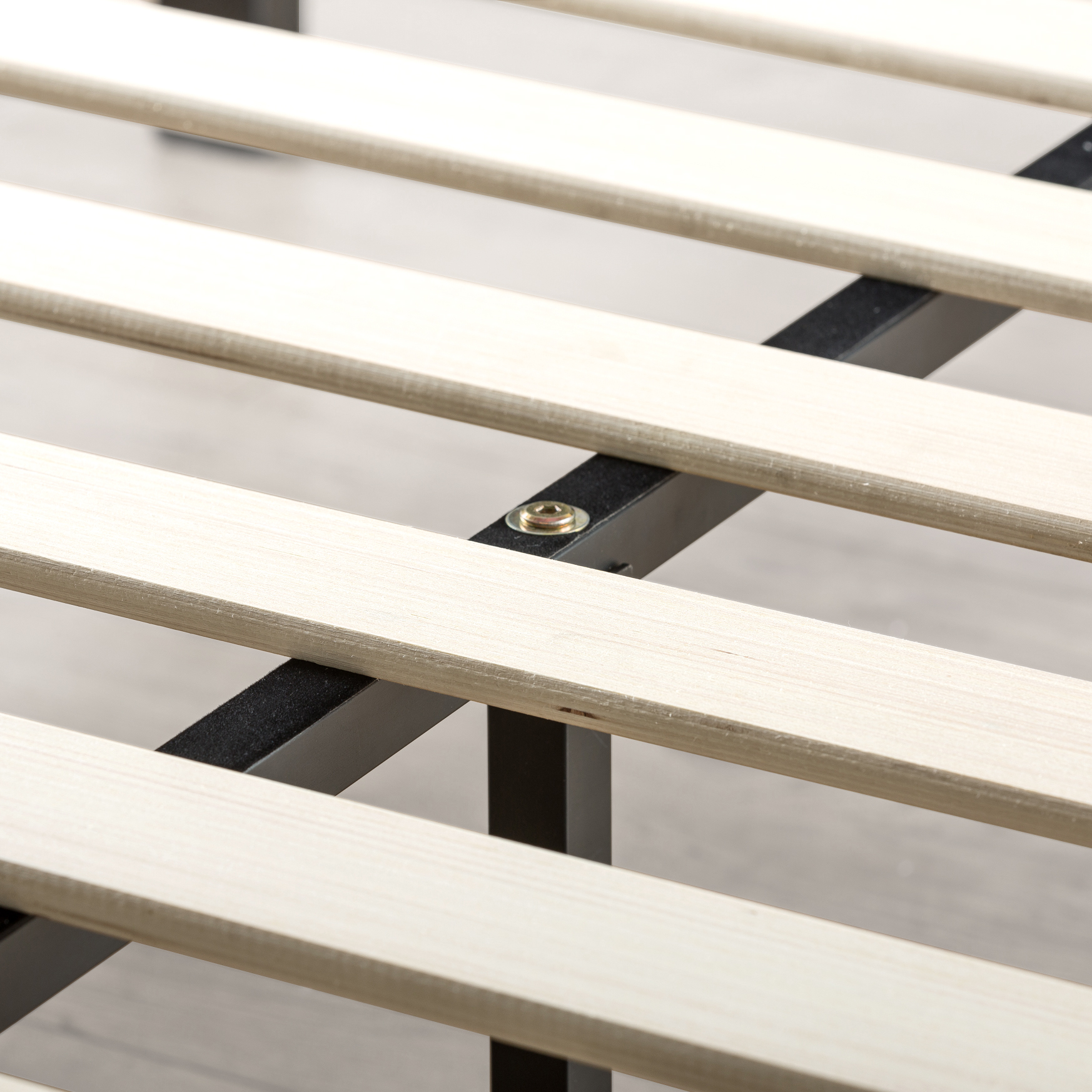 - Velvet padding on center bar and non-slip tape on the wooden slats for noise-free stability