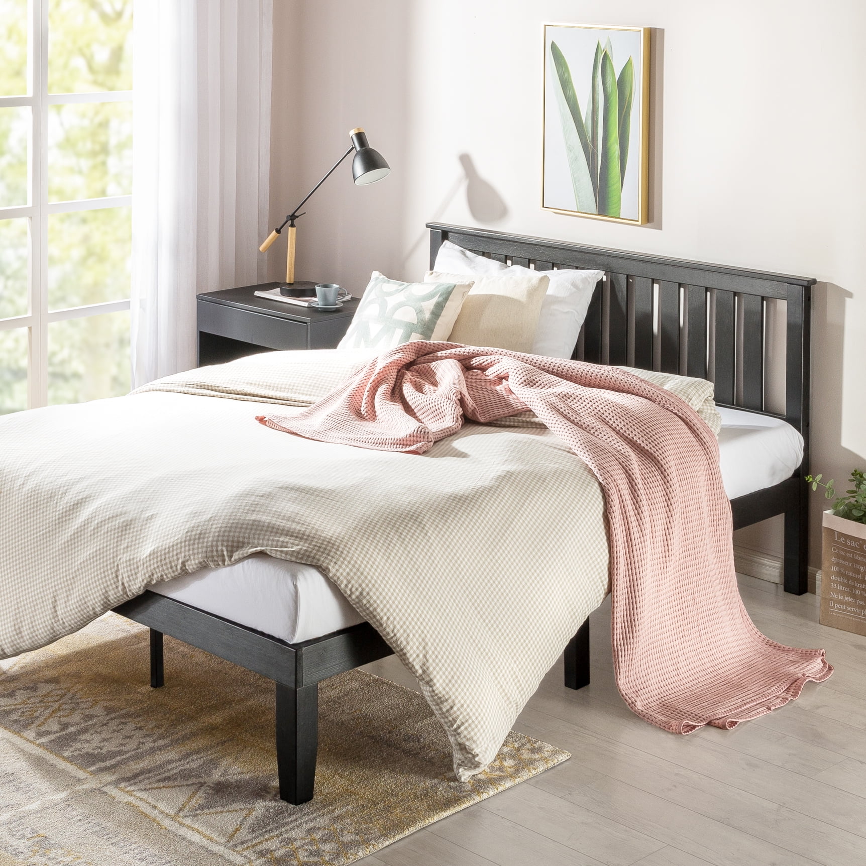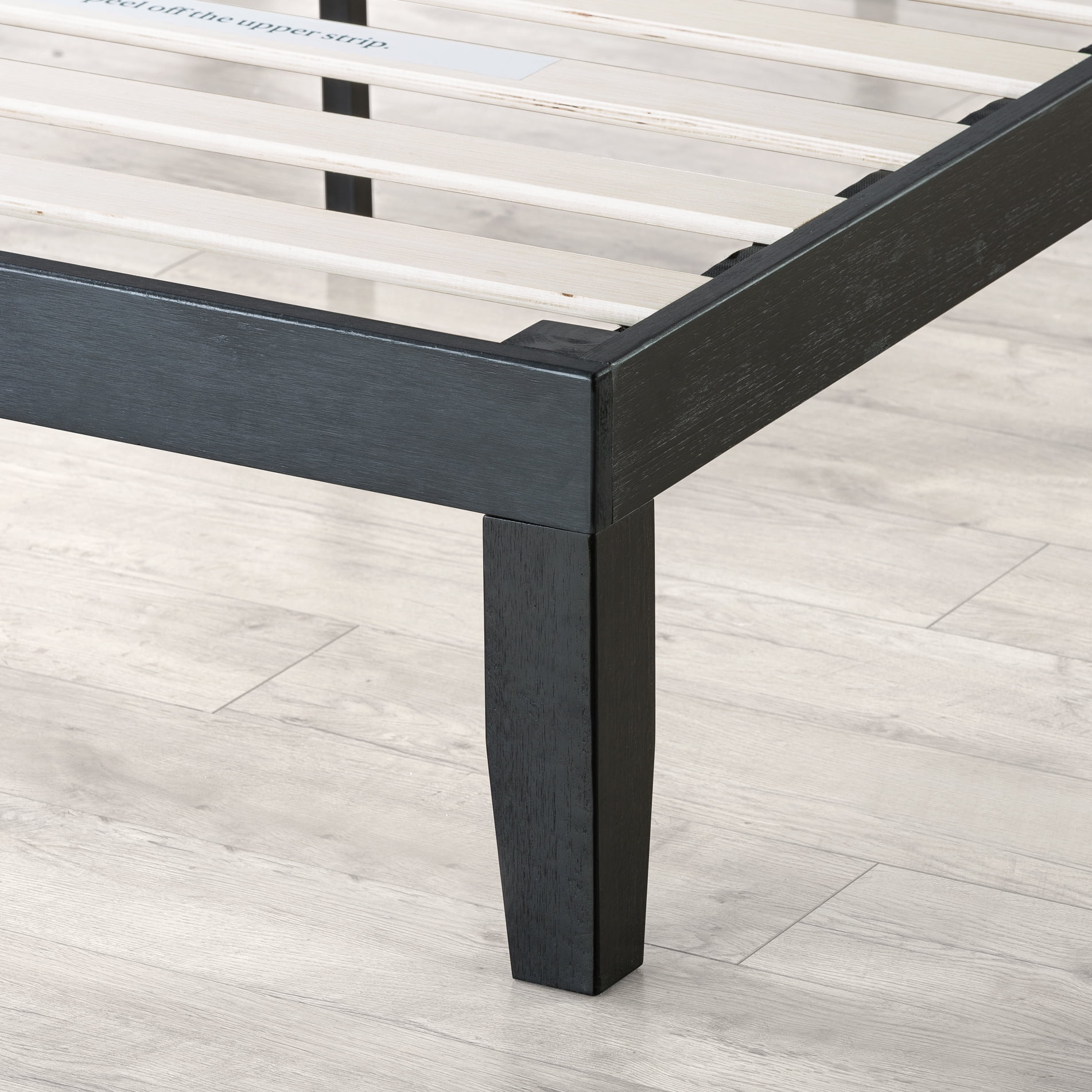 - Solid wood platform bed made with real Acacia wood in a natural open-grained, Ebony Black finish