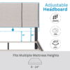 - Assembled Size: Queen: 43.5-47.5″ H x 64″ W x 86″ L, 60 lbs, Full: 43.5-47.5″ H x 59″ W x 80″ L, 56 lbs, Twin: 43.5-47.5″ H x 43″ W x 80″ L, 50 lbs.