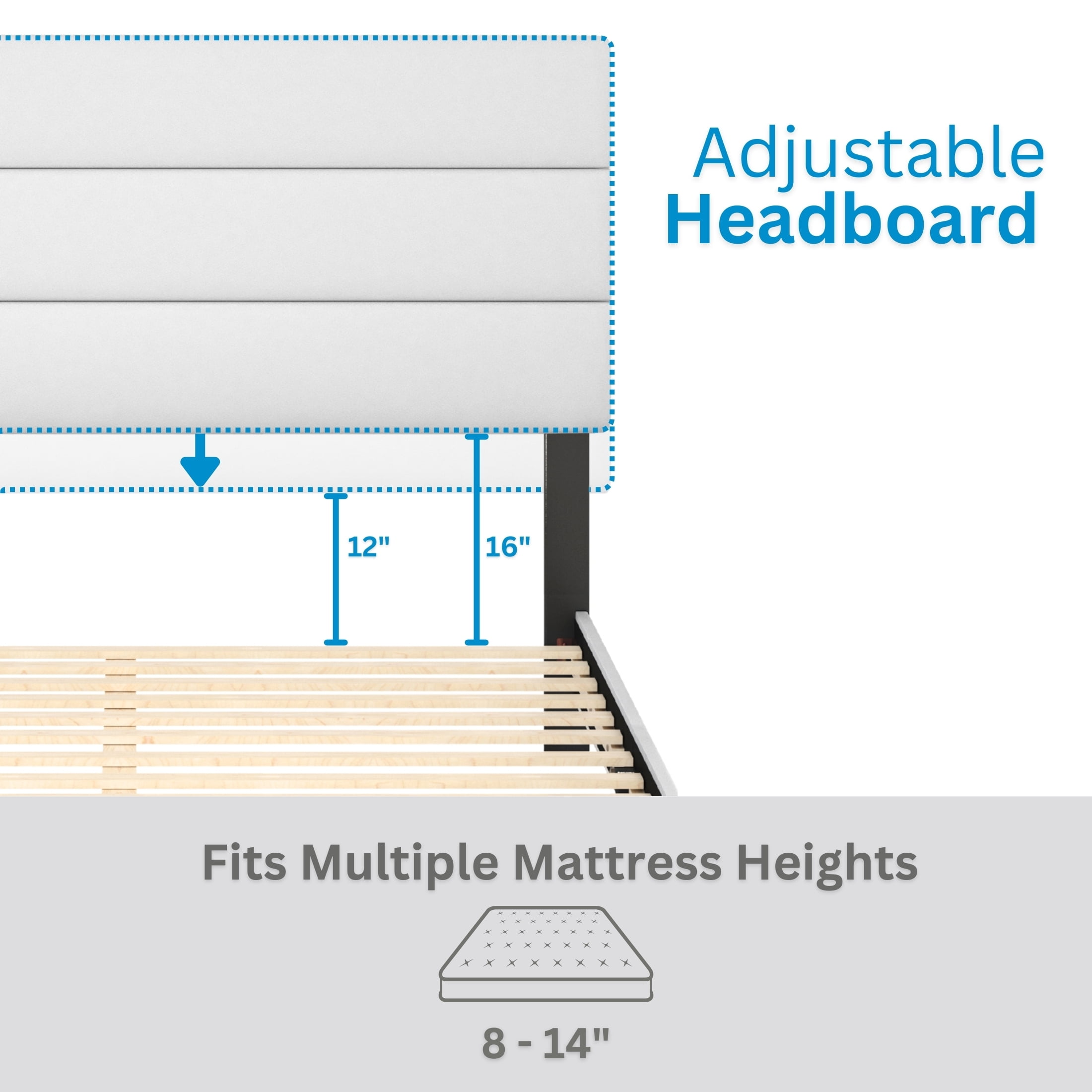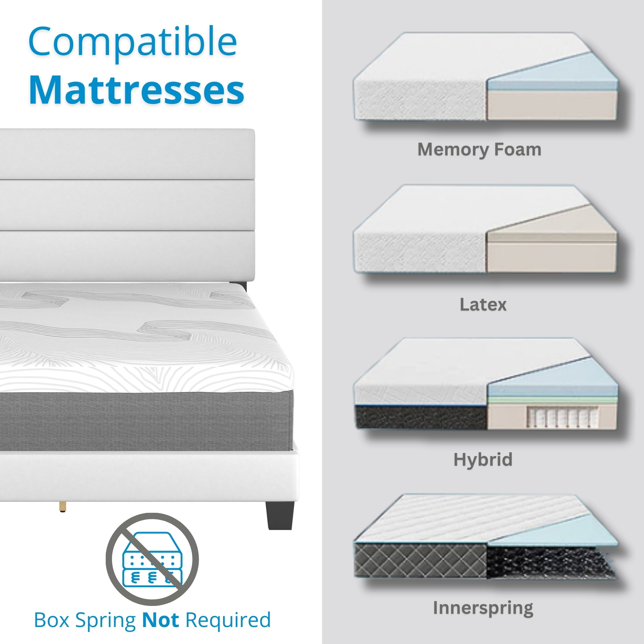 - Modern Upholstered Platform Bed: The Boyd Sleep Piedmont bed frame features a sleek vegan leather upholstered adjustable headboard, ensuring a tailored fit to a variety of mattress thicknesses.