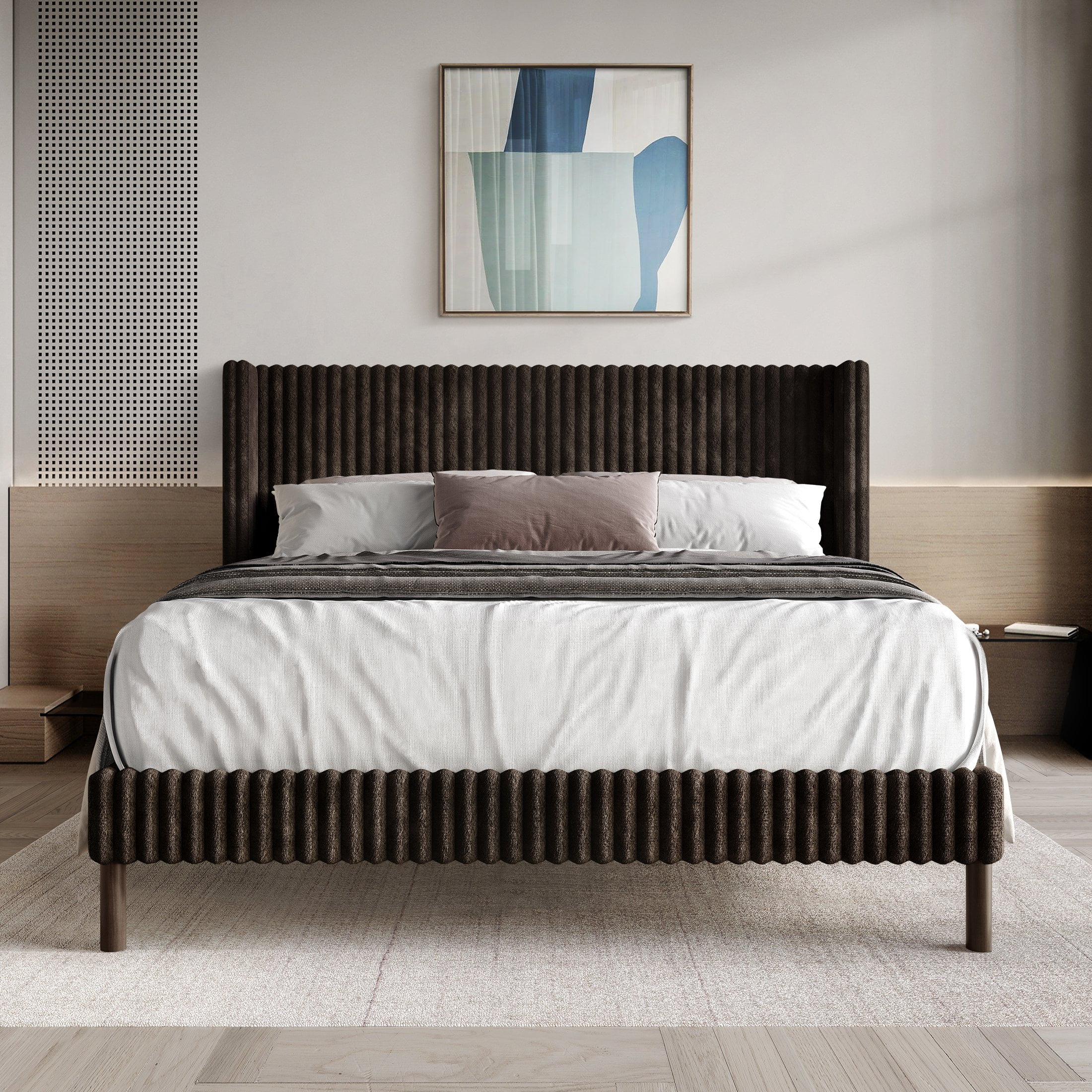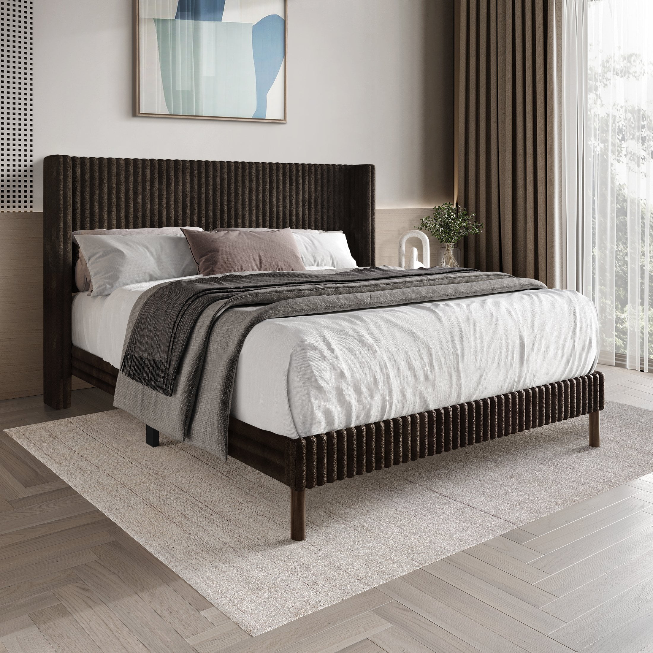 Upgrade your bedroom décor with this chic adult bed featuring a unique corduroy pattern and wingback design that exudes sophistication. Upholstered in sumptuous velvet fabric, it combines a luxurious feel with exceptional durability, ensuring comfort that lasts. Crafted from premium rubberwood, MDF, and LVL, this bed offers unparalleled strength and stability for long-lasting performance. A box spring (sold separately) is recommended for optimal support. Available in two elegant shades, Brown and Light Grey, and in Twin, Full, Queen, and King sizes, it complements a variety of styles. Assembly is straightforward with clear instructions included, and it ships efficiently in one compact box for easy handling. Choose the ideal size for your space: – Twin: 79.20L x 44.92W x 46.10H (Capacity: 300 lbs) – Full: 79.20L x 59.89W x 46.10H (Capacity: 400 lbs) – Queen: 84.52L x 66.00W x 46.10H (Capacity: 500 lbs) – King: 84.52L x 81.56W x 46.10H (Capacity: 600 lbs)