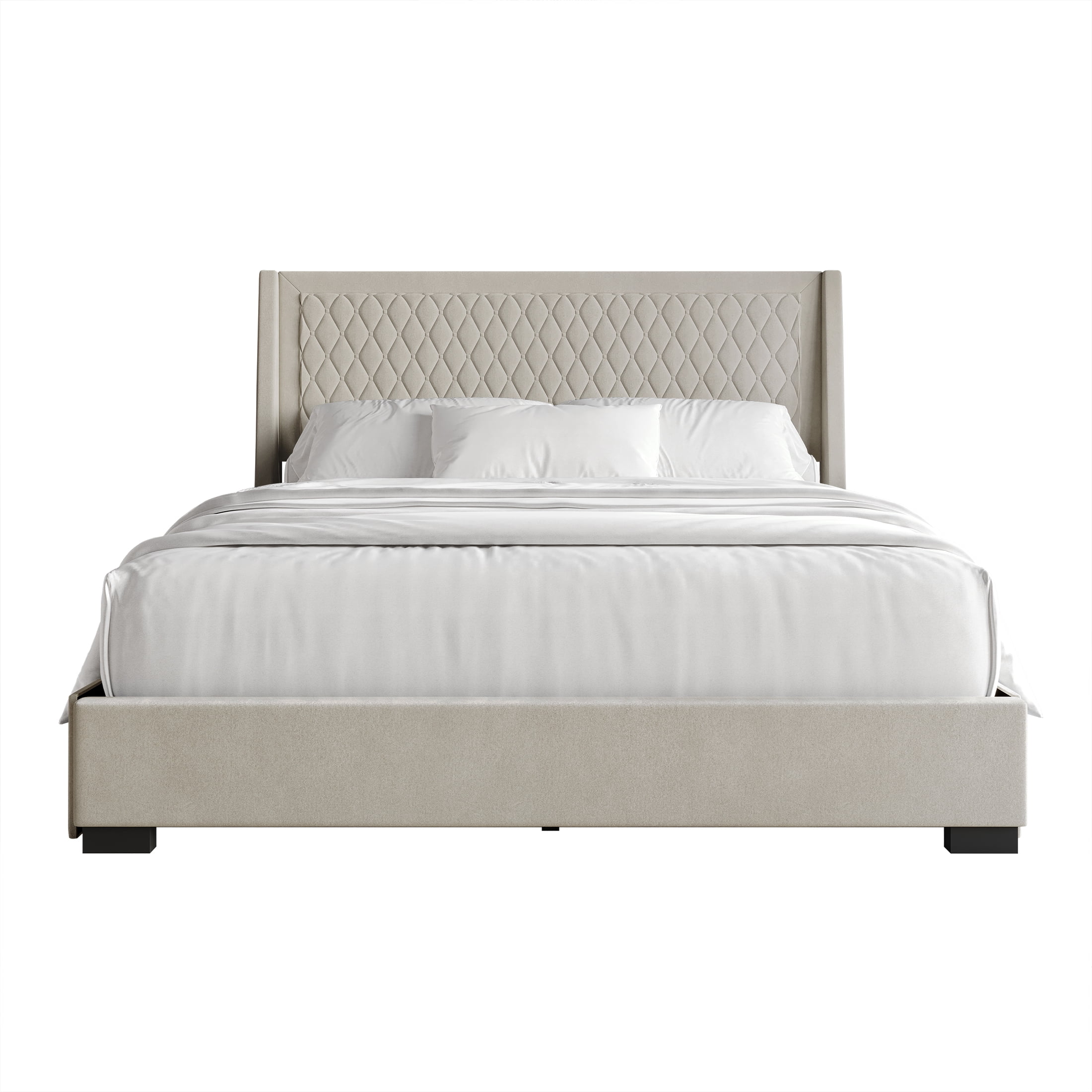 Castle Place Elegant Retreat Diamond Stitch Velvet King Platform Bed with Storage Drawers, Beige