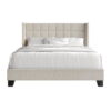 - This adult bed showcases a wingback headboard with square stitching, infusing a modern flair into its sophisticated design