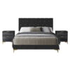 - Includes: 1 upholstered bed and 2 pcs nightstands