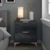 Introducing our exquisite upholstered bed and nightstand set, featuring a stunning crystal diamond button tufted headboard and elegant gold metal legs. Crafted with meticulous attention to detail, the bed is upholstered in luxurious polyester velvet and constructed with solid MDF for durability. Each nightstand offers two spacious drawers for ample storage. Available in chic black and four sizes, this 3-piece set ships conveniently in one box. Elevate your bedroom decor with sophistication and functionality today.