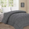 - Twin/Twin XL Down Alternative Comforter Set includes one reversible comforter, 66″ x 86″ and two reversible pillow shams 20″ x 26″.