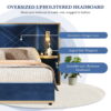 - Soft velvet fabric upholstery with gold PU leather accents creates luxurious wingback headboard