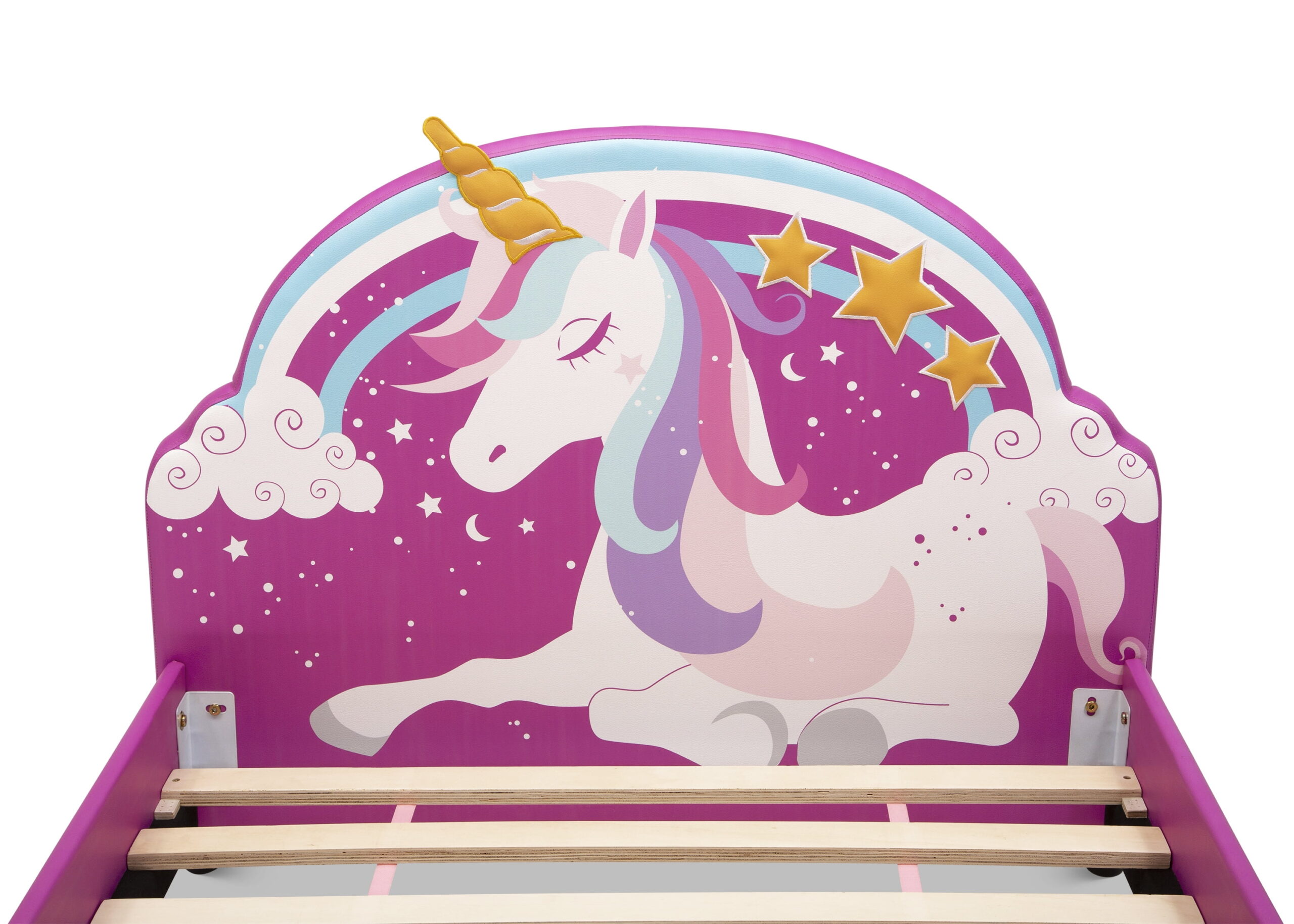 - MAGICAL UNICORN DESIGN: Vibrant and fun unicorn graphics on the headboard | 3D applique detailing on the footboard