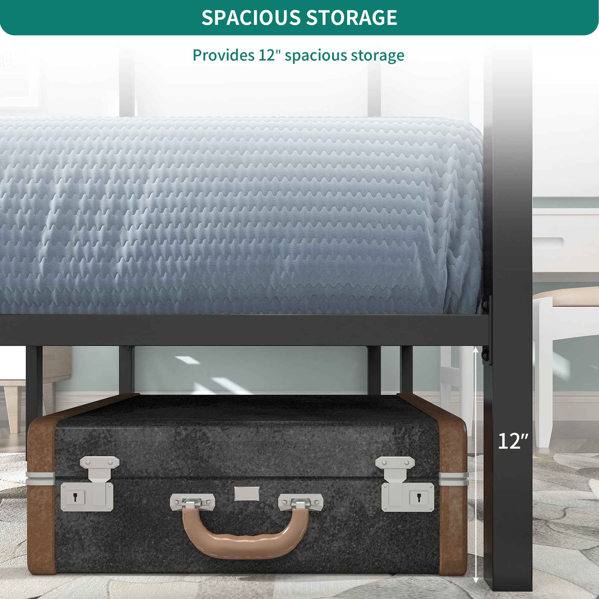 - UNDER BED STORAGE – All sizes are 14 inches platform bed; Below the steel bed frame is storage space up to 12-inches tall where you can store your boxes, suitcase or toys; Provides more space when tidying up your bedroom
