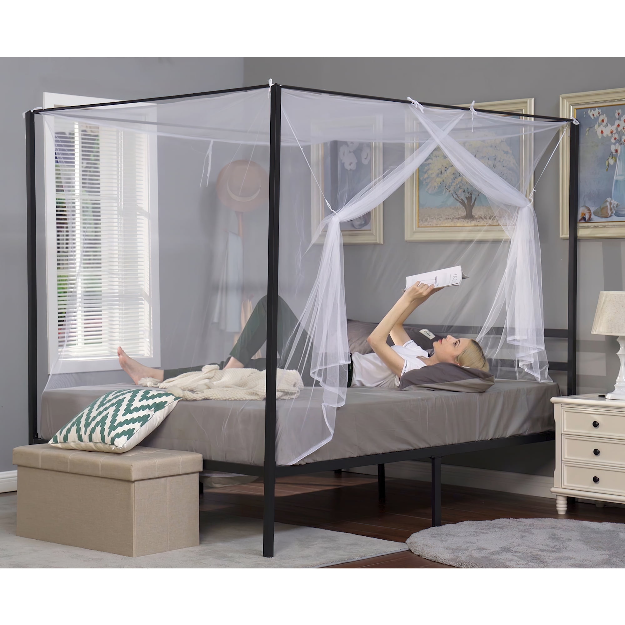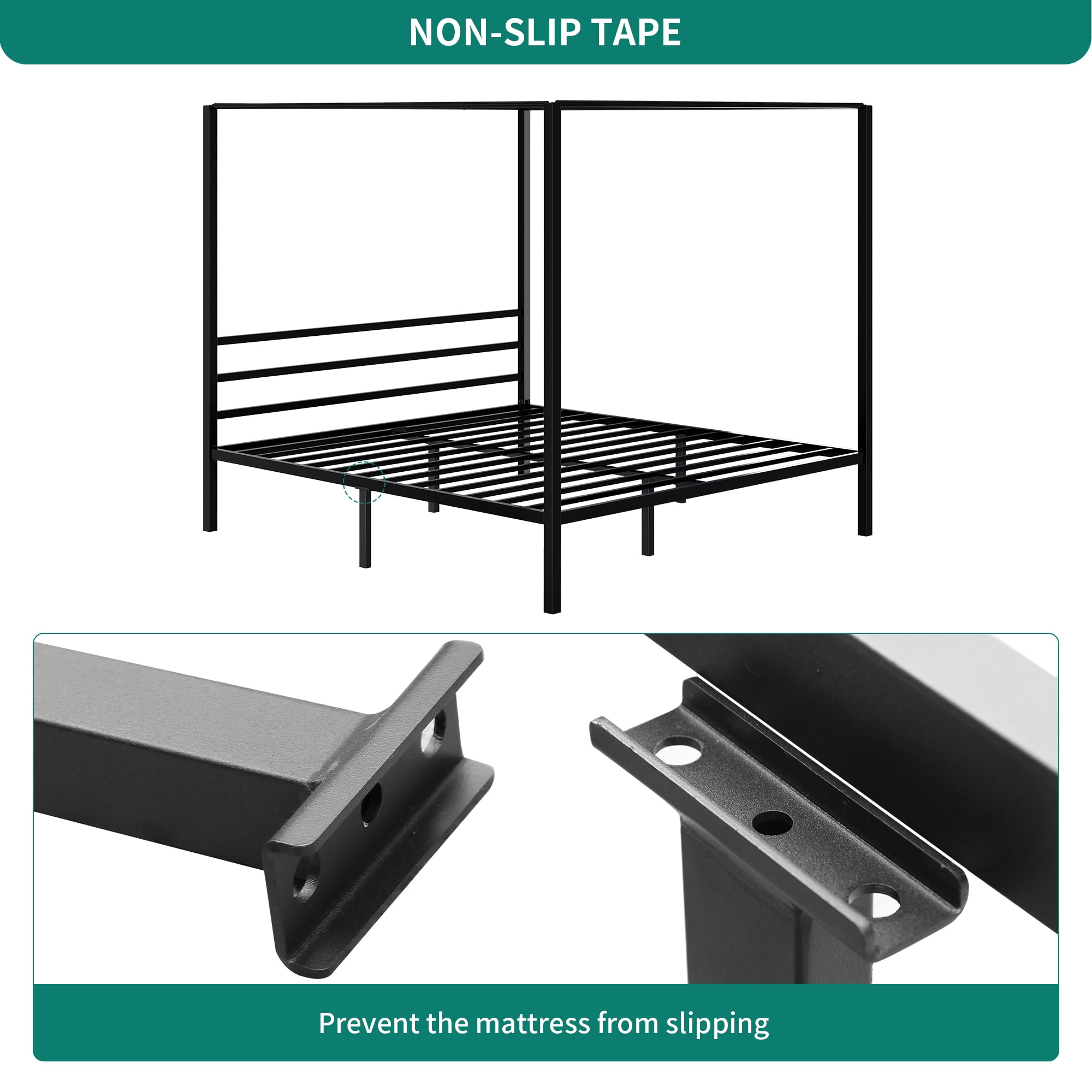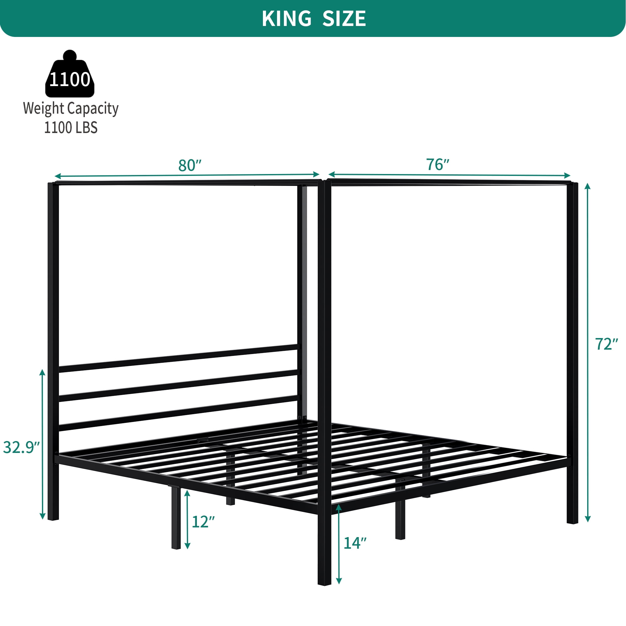Dextrus Metal Canopy Bed Frame with Built-in Headboard / 14 Inch Platform / Strong Metal Slat Support.