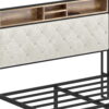 • Storage Headboard: This upholstered bed frame offers incredible practicality. The thickened storage headboard serves as a 2-in-1 solution, and the spacious top shelf is perfect for keeping your phones, clocks, glasses, and decorative items. The high-density foam filling creates a comfortable backrest for relaxation.