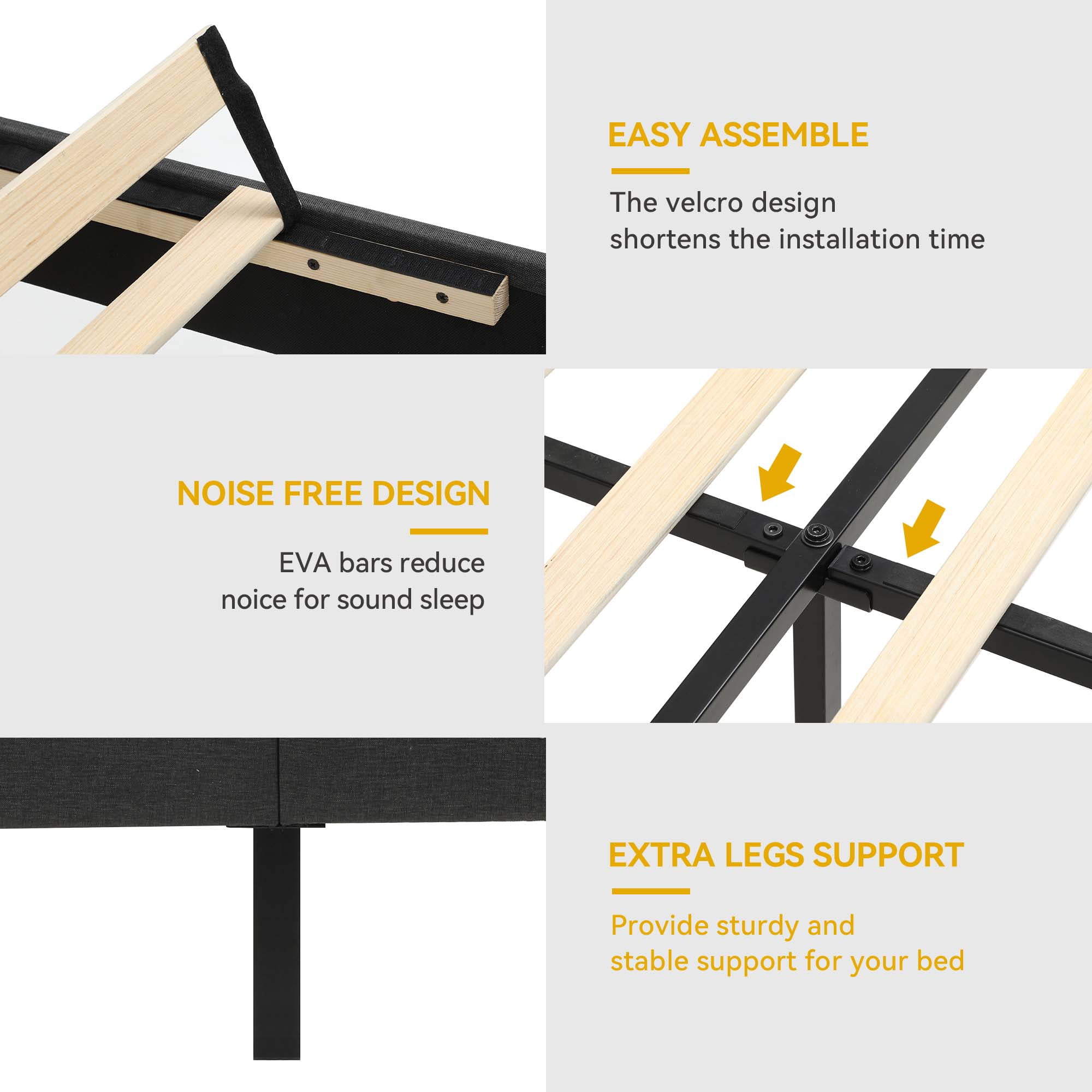 • Detail craftsmanship – Our storage bed frame is sturdy and durable, with unparalleled durability; The combination of solid wooden slats and reliable metal supports is elaborately made to provide stable mattress support; It can hold up to 1100 pounds, so you can rest assured every night.