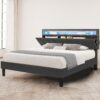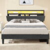 Dextrus Queen Size LED&Upholstered Headboard Bed Frame, No Box Spring Needed, Grey