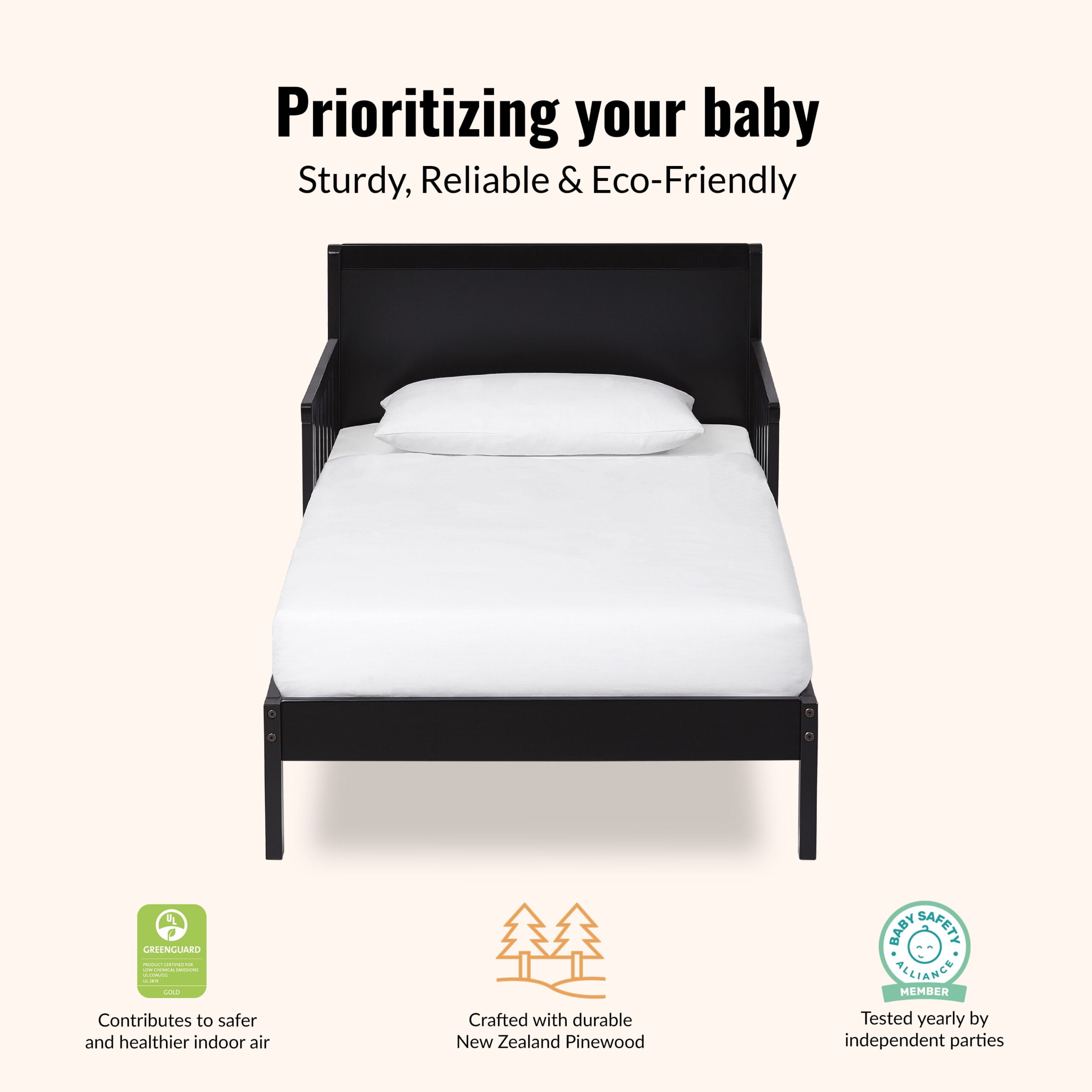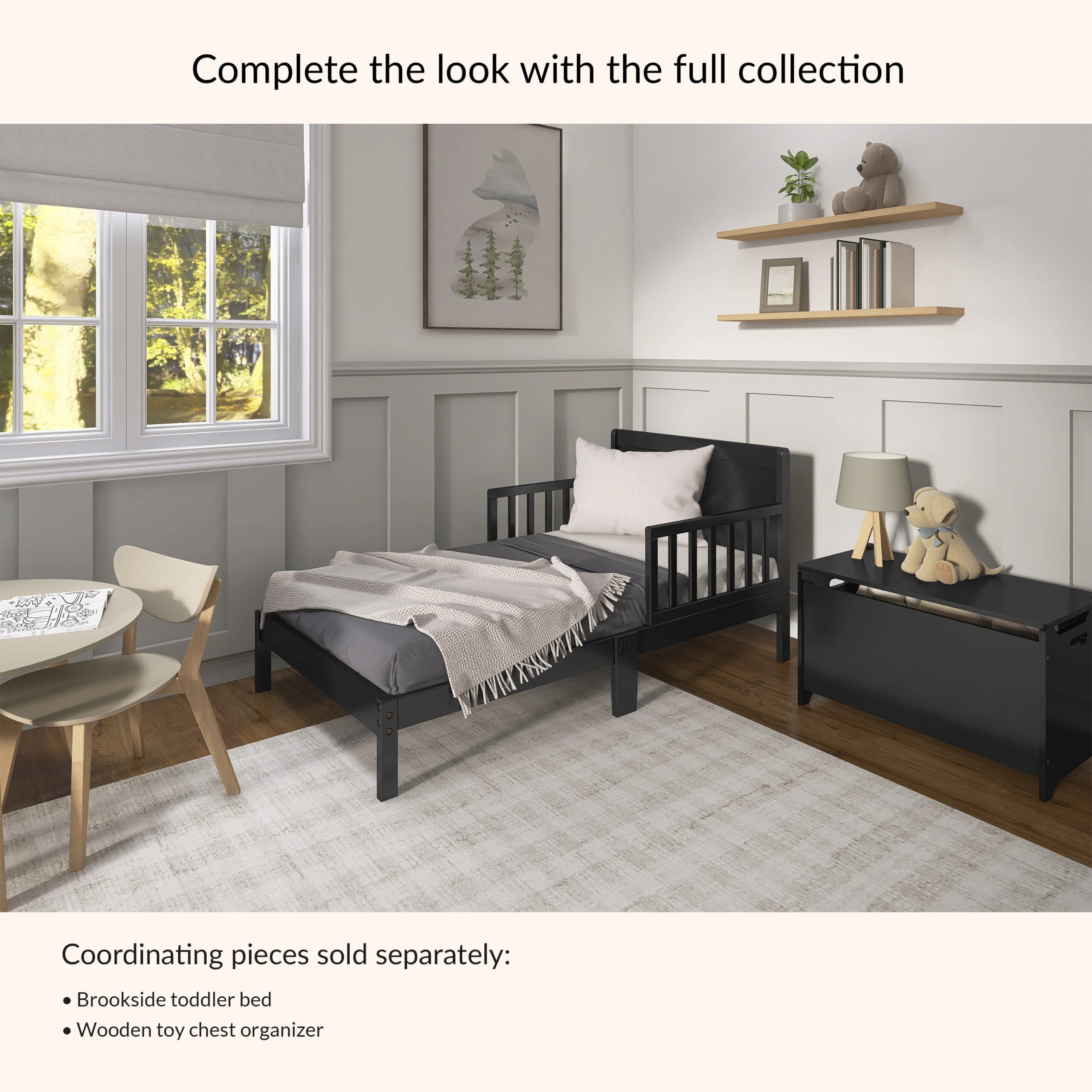 Dream On Me Brookside toddler bed gives your child a fun, colorful, and comfortable bedroom. This toddler bed offers a modern frame design that will blend nicely into any child’s room and transition with them as they grow with a low to the floor design, it is ideal for your toddler to safely get in and out of bed. It is reinforced for stability with center legs and comes complete with two side safety rails for added security in radiant finishes. The Dream On Me Brookside Toddler Bed is the perfect transition for toddlers, who have outgrown their cribs but are still too small for an adult bed. The brilliant combination of playful colors and outstanding comfort make this bed a perfect way to enhance any child’s bedroom.