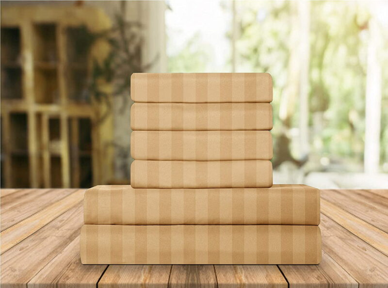 Elegant Comfort 6 Piece Bed Sheets Polyester Full Stripe Medallion Gold Stripe Sheet Set
