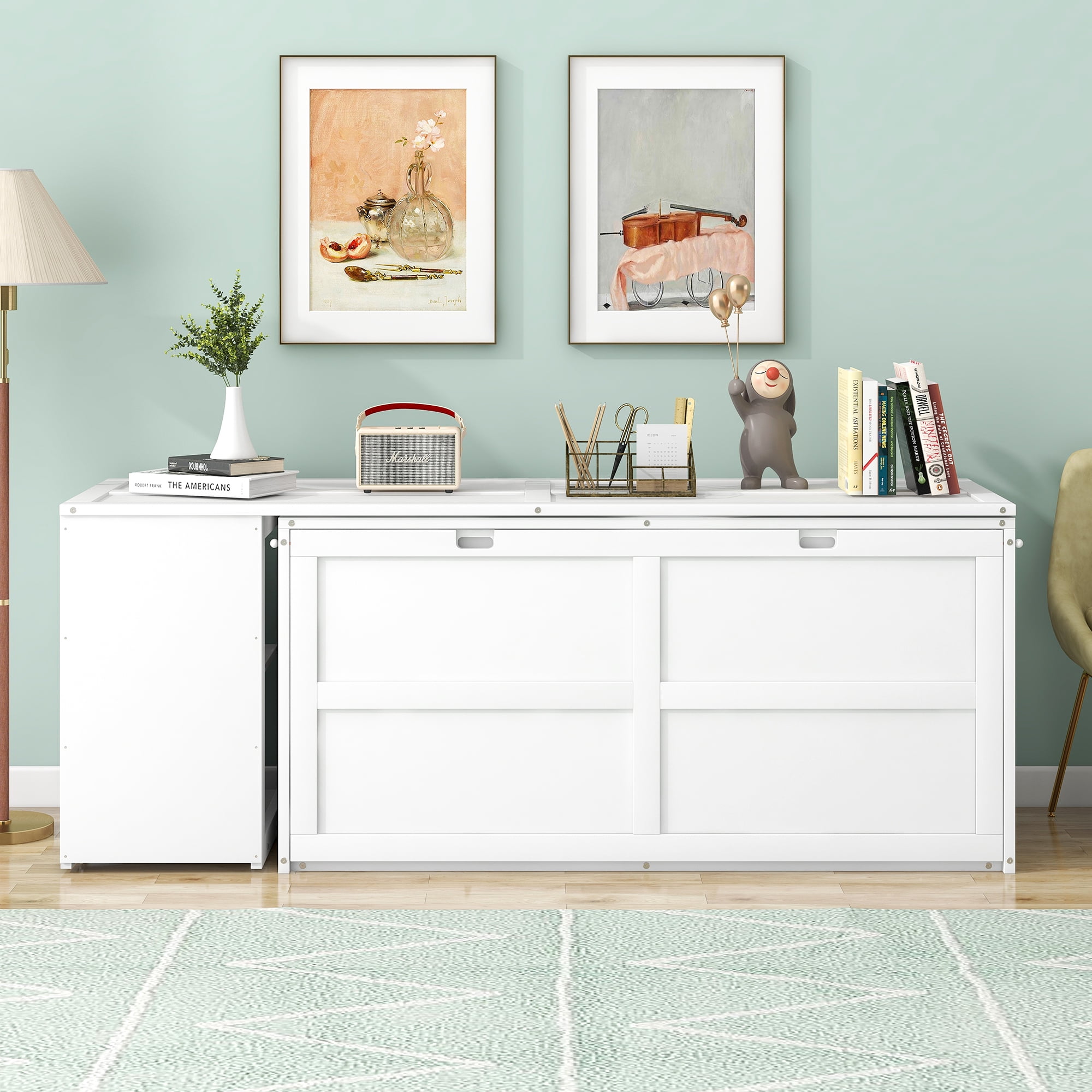 The Euroco Queen Size Murphy Bed with Movable Desk is the ultimate space-saving solution, perfectly designed for studios, guest rooms, or home offices. Its core feature is a robust vertical fold-up mechanism that effortlessly stows a queen-size bed, instantly freeing up valuable floor space. The integrated, movable desk on casters offers unparalleled flexibility for work or leisure. Enhanced by built-in side shelves for storage and a durable, modern design, this unit combines multiple furniture functions into one. It provides a safe, sturdy, and stylish answer to the challenges of small-space living, transforming a bedroom into a multi-purpose area with ease.