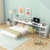 - Integrated and Movable Desk: Uniquely equipped with a built-in desk that remains accessible when the bed is down. For ultimate flexibility, the desk is on locking casters, allowing you to easily roll it out for comfortable lounging or to reposition it within the room as needed.
