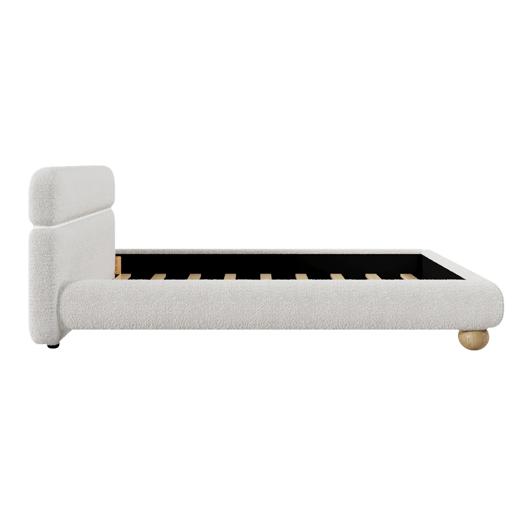 Euroco Teddy Fleece Fabric Queen Size Platform Bed with Round Legs, White
