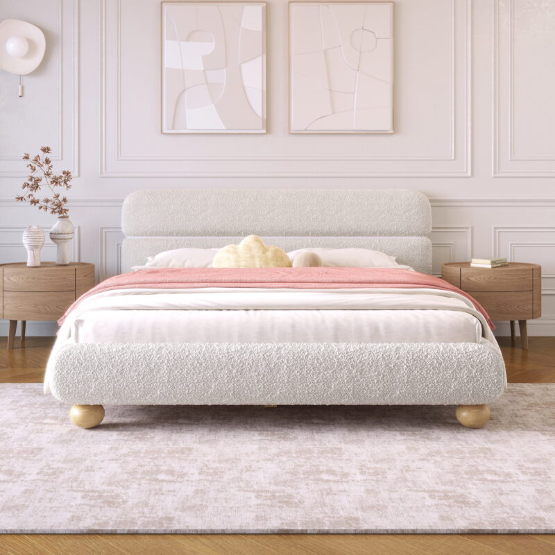 • Plush Euroco Teddy Fleece Upholstery: The bed is wrapped in a super-soft, high-pile Euroco teddy fleece fabric, offering a luxurious and cozy feel. This inviting texture adds a touch of modern elegance and warmth to any bedroom decor.