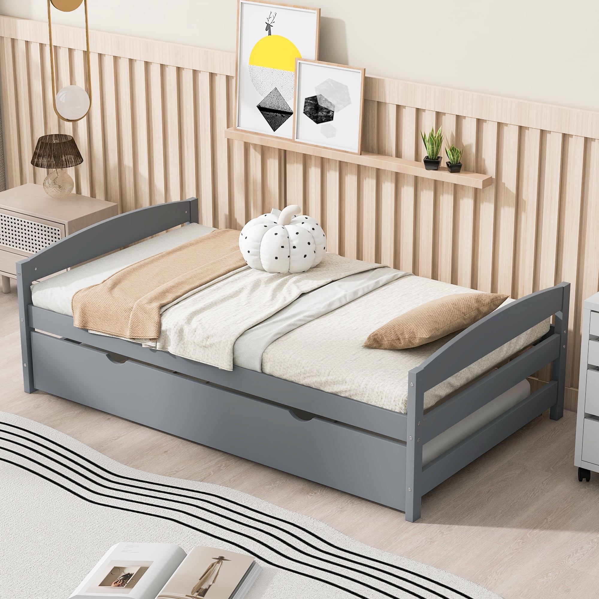 EUROCO Twin Size Platform Bed Frame with Trundle, Low Profile Easy Assembly Daybed for Kids Teens Bedroom, Gray