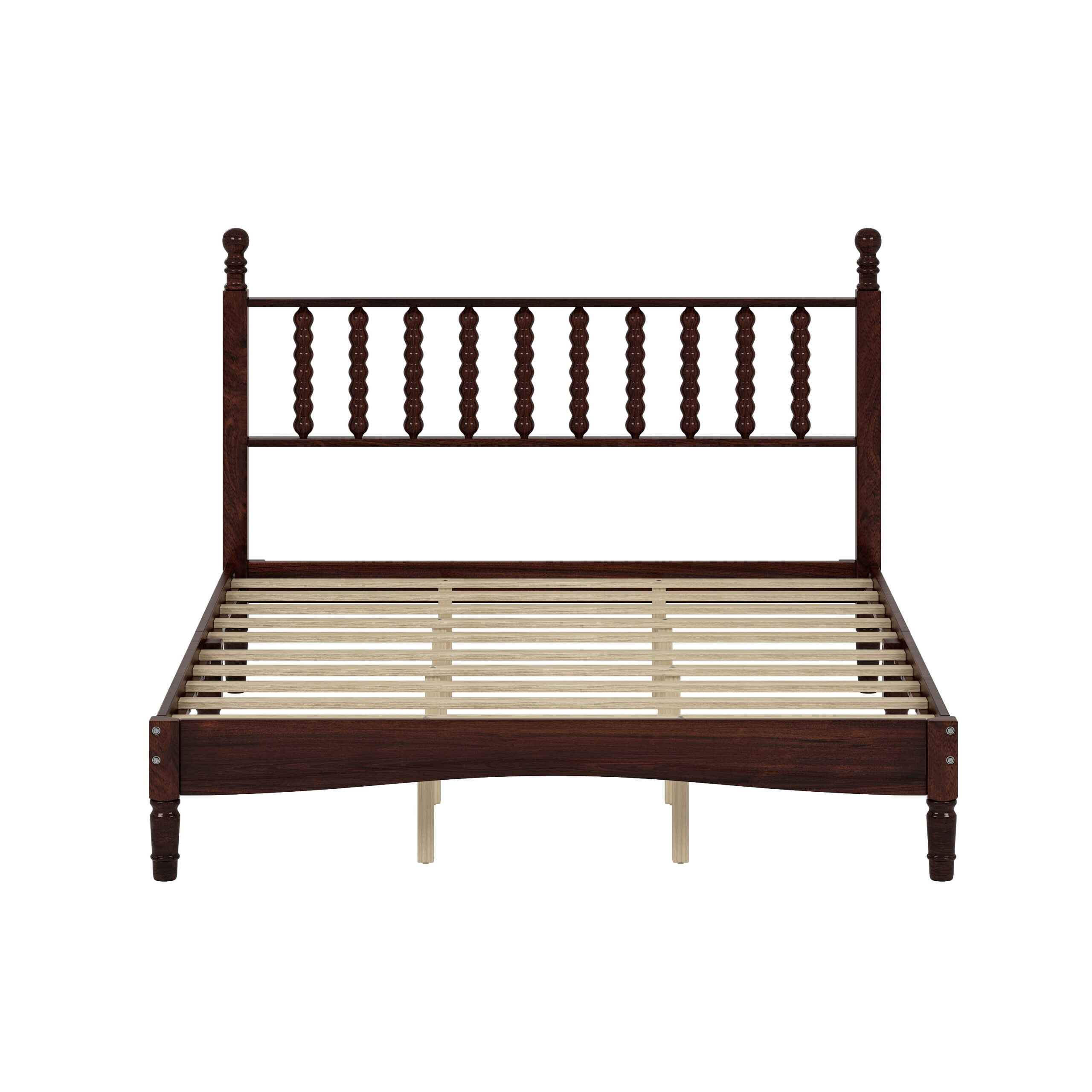 Add a touch of vintage charm to your bedroom with this Queen Size Wood Platform Bed. Featuring a gracefully gourd-shaped headboard, this bed blends retro aesthetics with modern functionality. The sturdy wooden frame and durable slat support eliminate the need for a box spring, ensuring a stable and noise-free sleeping experience. Crafted from high-quality wood with a warm, natural finish, it’s both stylish and long-lasting. Perfect for any classic or eclectic interior design, this platform bed combines elegance and comfort in one timeless piece. Assembly is easy, and it fits standard queen-sized mattresses.