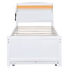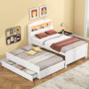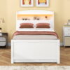 This storage platform bed is simple and fashionable. The headboard features 2-tier shelves for your cosmetics or other small items. The 3 drawers gives you extra space for storing daily necessities such as bed sheets to accessories or off-season clothing. The attached LED light brings convenience to your night life. The trundle is enough to accommodate your friends or any overnight sleepers.