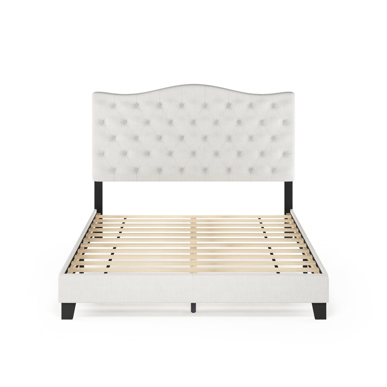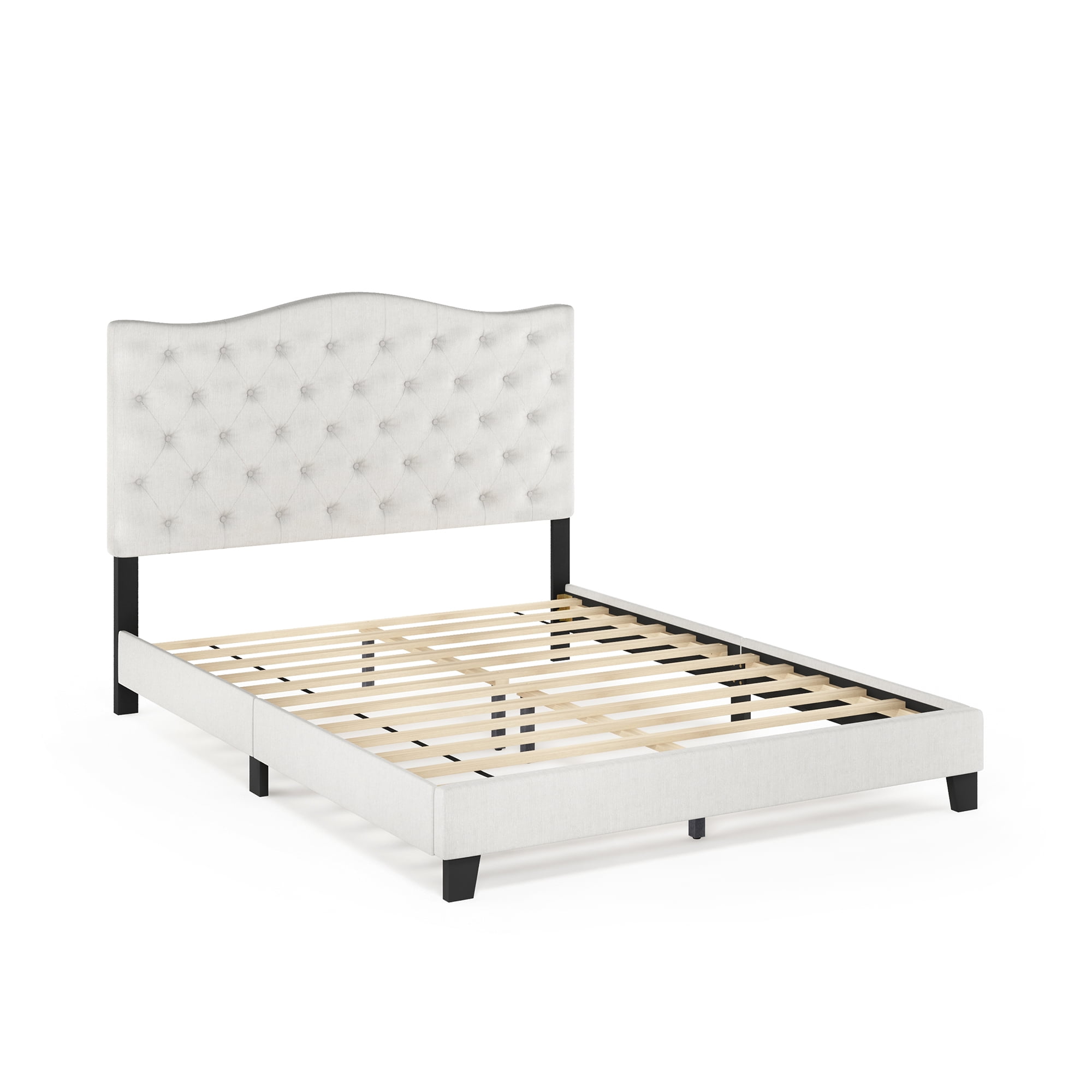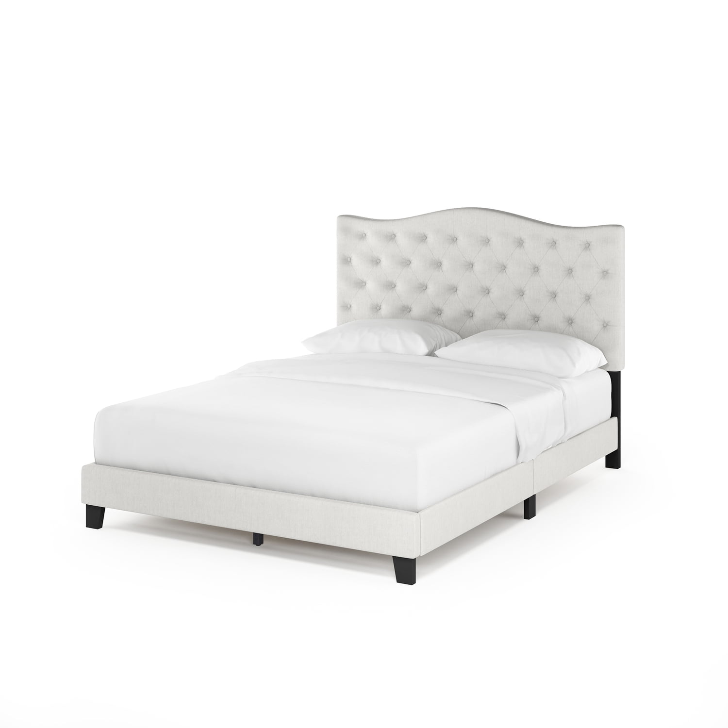The perfect centerpiece for your bedroom! Furinno Lille Button Tufted Bed Frame features a button tufted headboard and low profile footboard style frame. Its beautiful linen upholstery and cushioned padding will make your room look like a luxurious and comfortable haven to sleep in. Furinno Lille Button Tufted Bed Frame comes in multiple size options: Twin, Full, Queen and King. This platform bed can be easily assembled with the provided step-by-step assembly instruction and hardware pack. Wipe clean with clean damped cloth and this bed will look new for years to come. Avoid using harsh chemicals. Pictures are for illustration purpose. All decor items are not included in this offer.