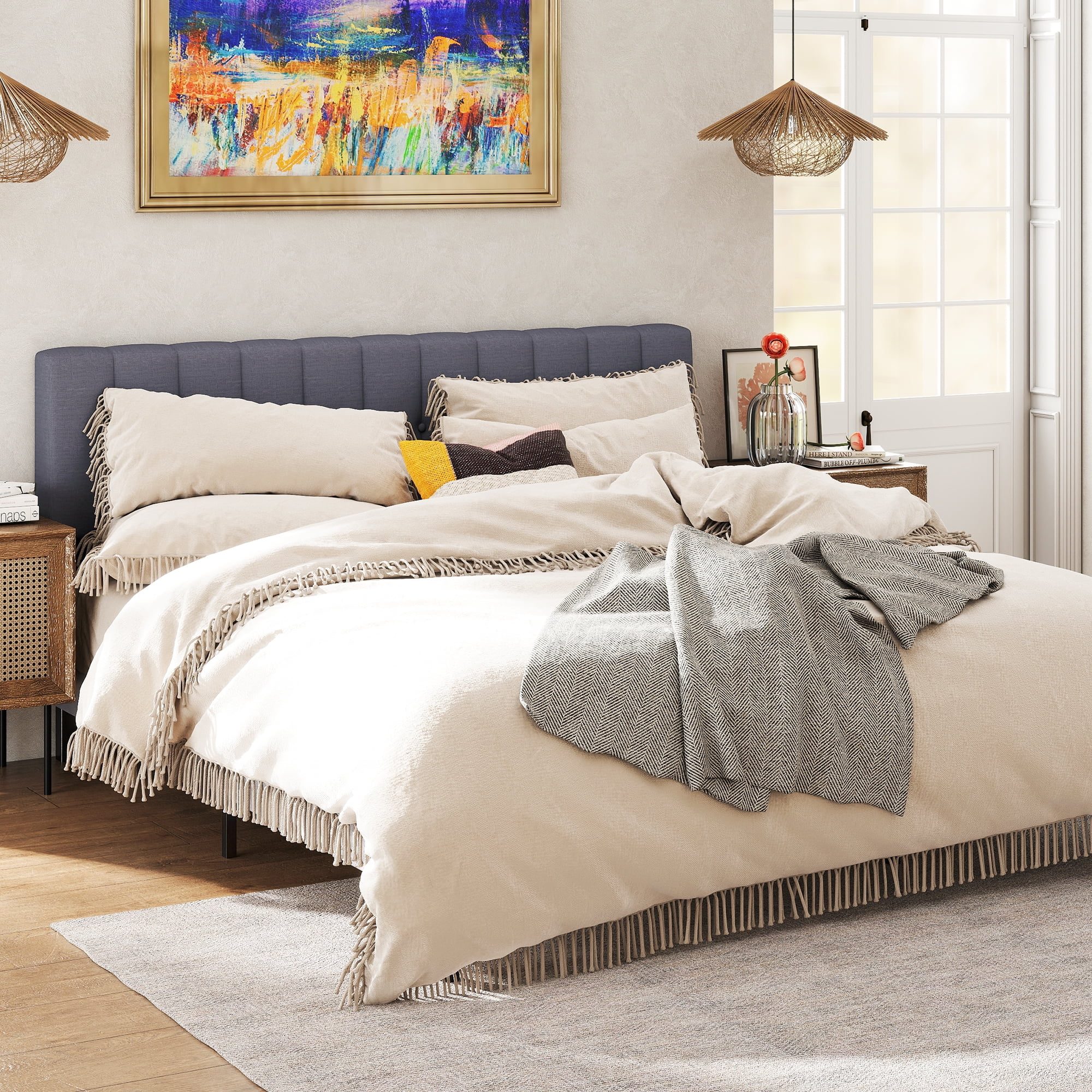 - Modern Upholstered Design: Grey fabric headboard with foam padding adds a clean, modern touch to your bedroom while offering comfortable backrest support.