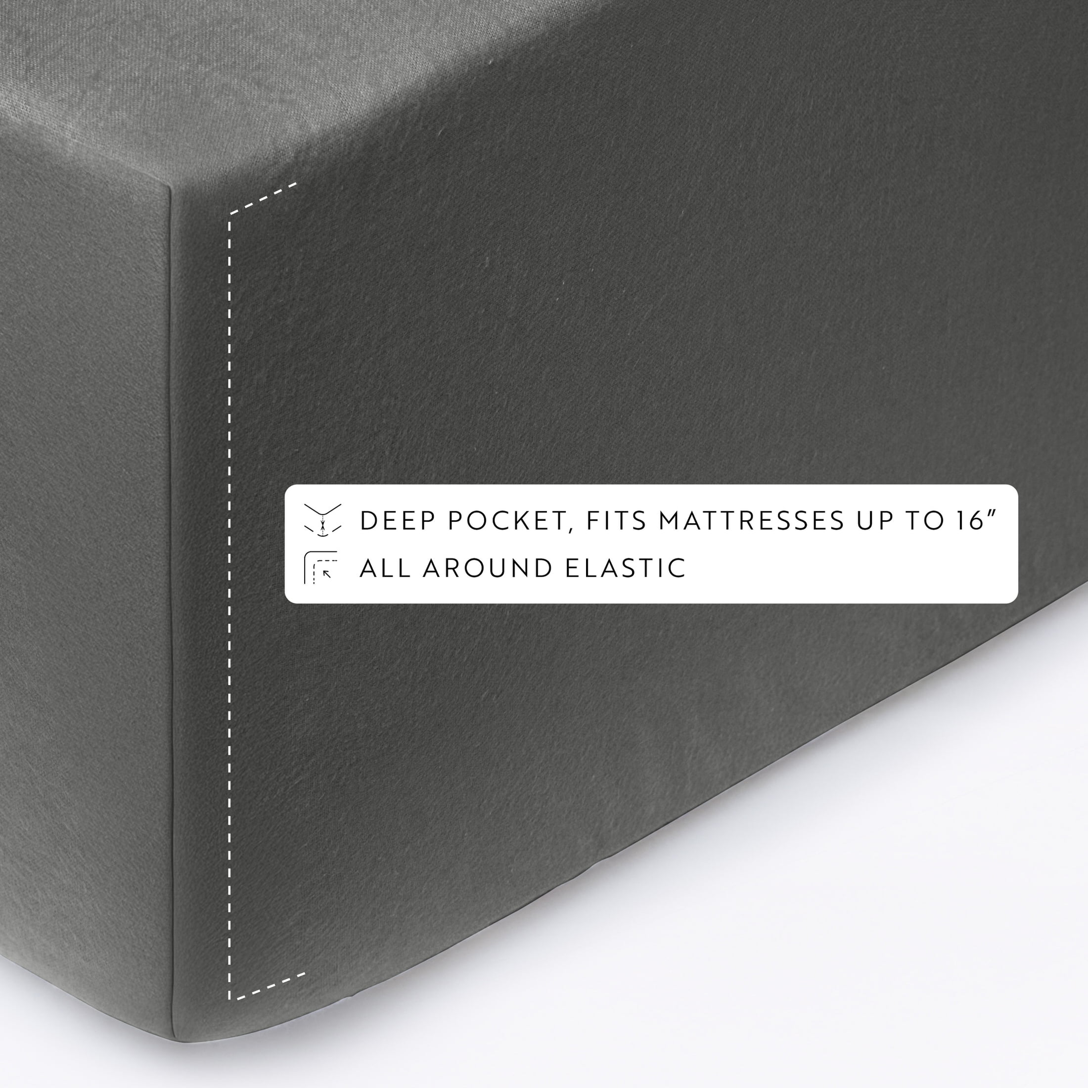 - 14″ deep pocket fitted sheets -accomandates a mattress up to 18″ deep