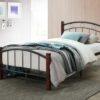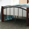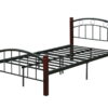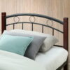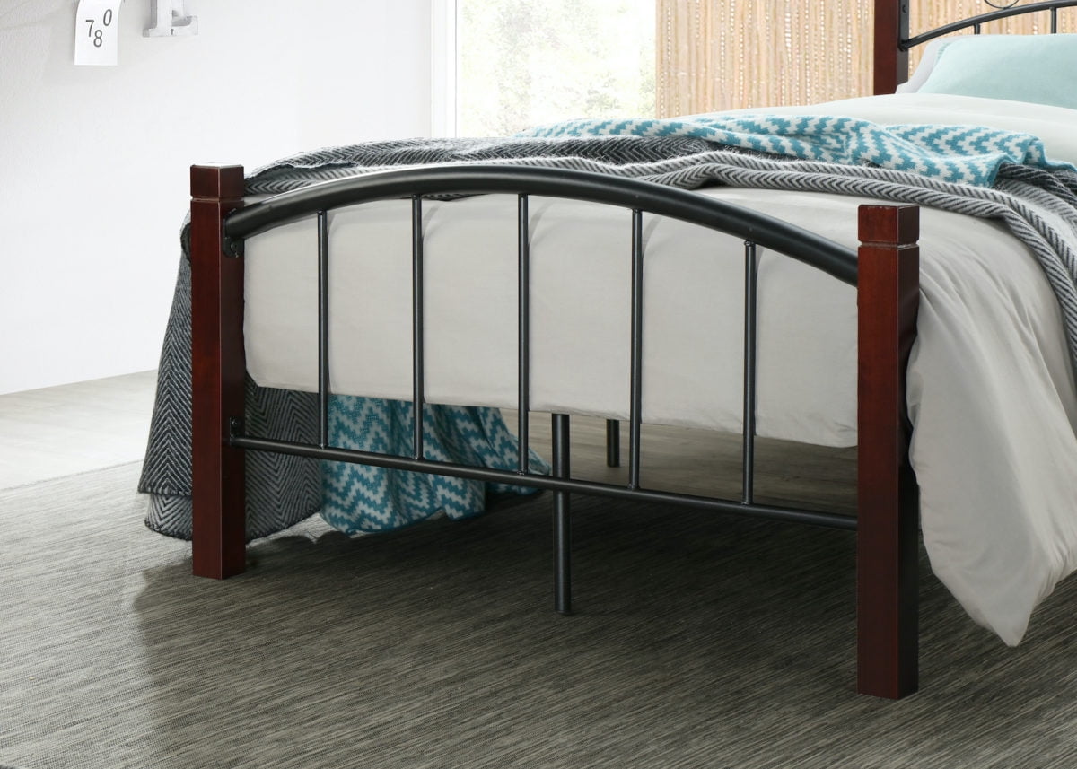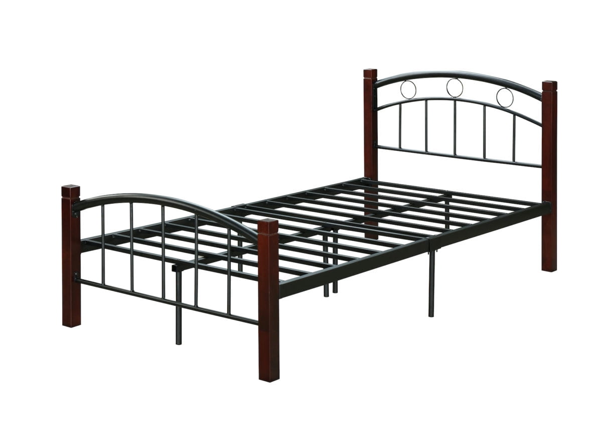 Adorn the astounding beauty of your bedroom with this Hodedah Metal Bed. The design comprises unique circular carvings on the headboard and footboard. This bed features a height that is just perfect for getting in and out of effortlessly. Since there is already a provision for supporting the mattress, a box spring is not required for this bed. Made using a combination metal frame and wood post, this bed is strong, robust, and enduring. The mahogany finish adds to the overall look of this bed.