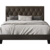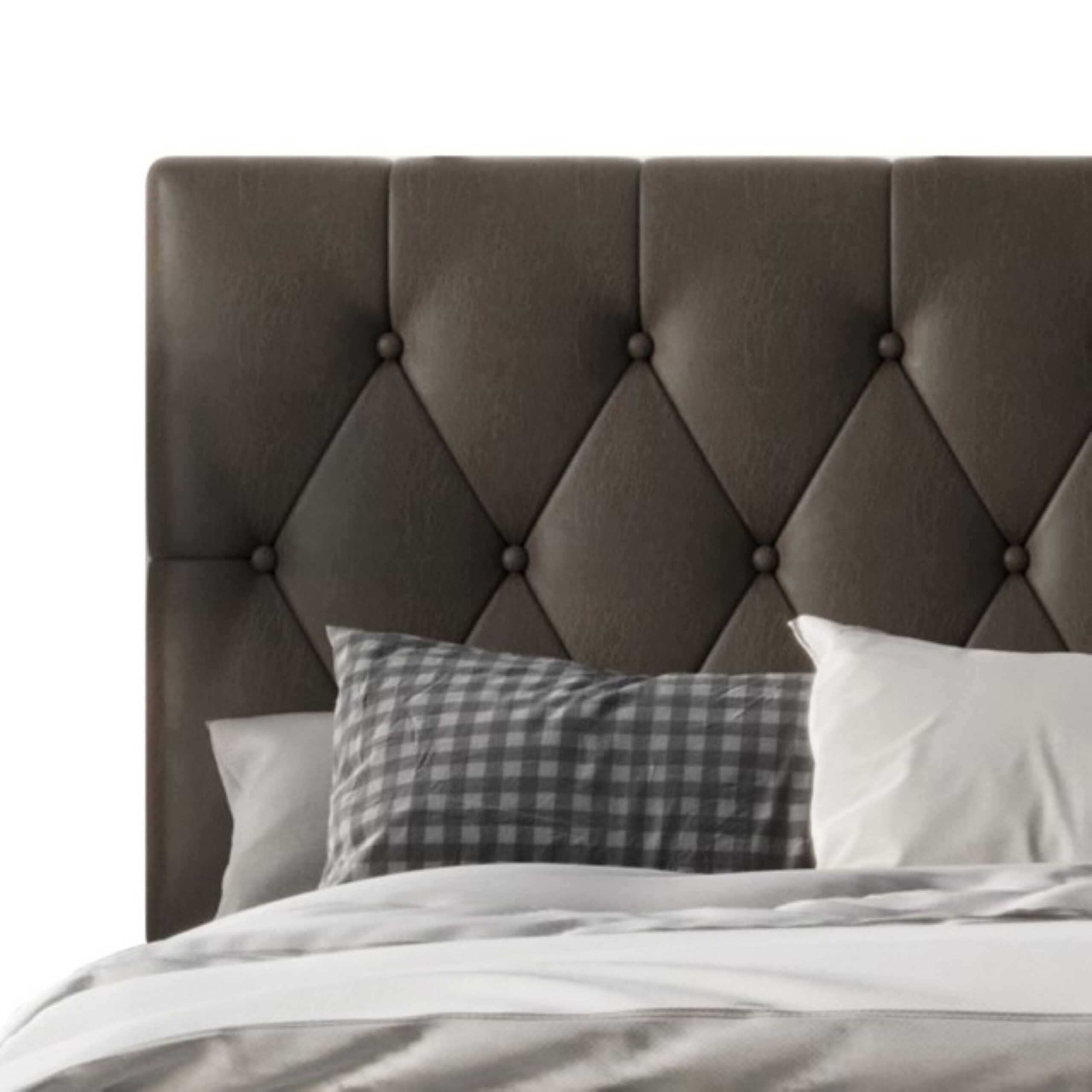 Home Design Daisy Twin Modern Upholstered Platform Bed Frame with Button Tufted Headboard, PU Brown Leather, Easy Assembly