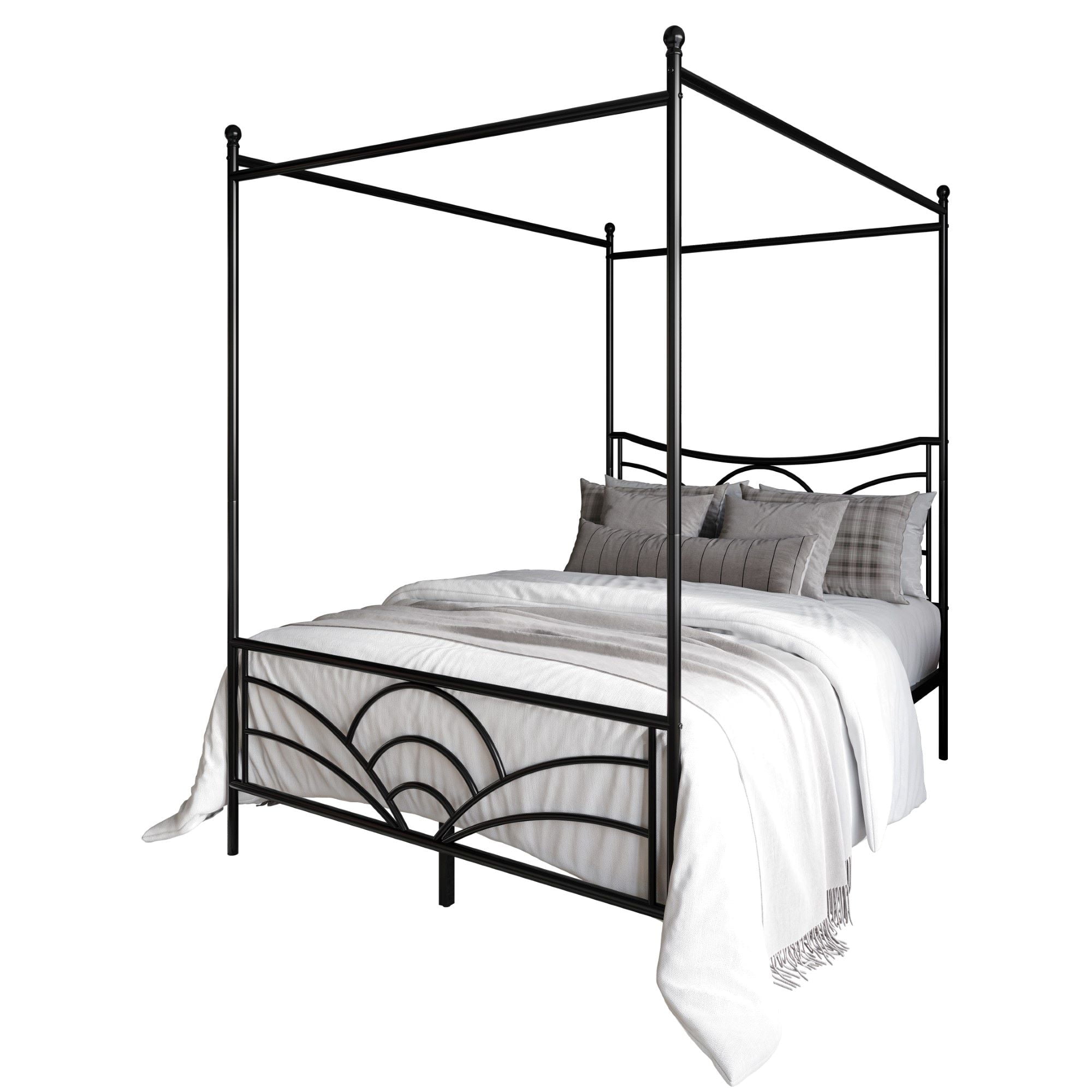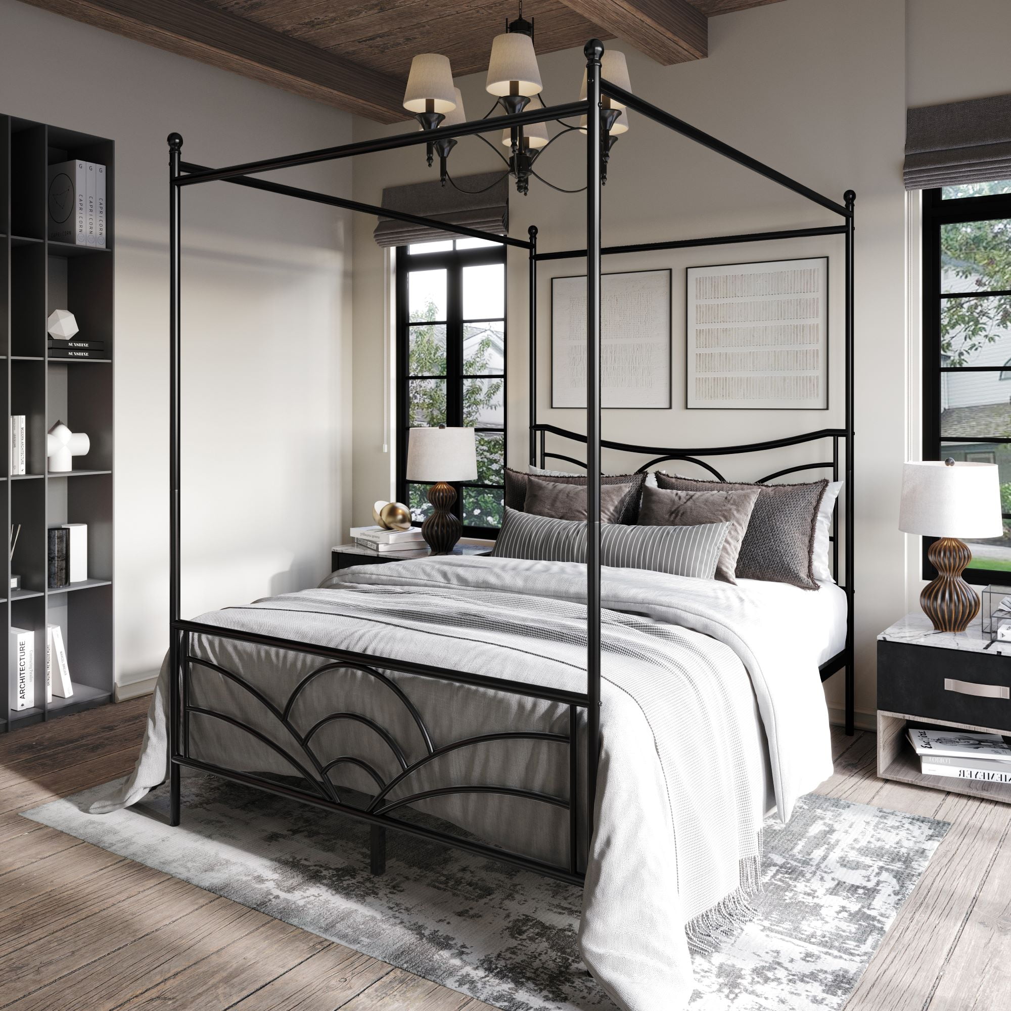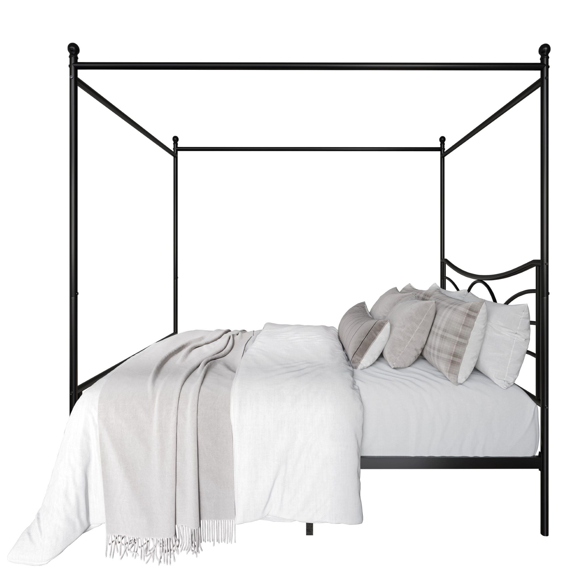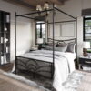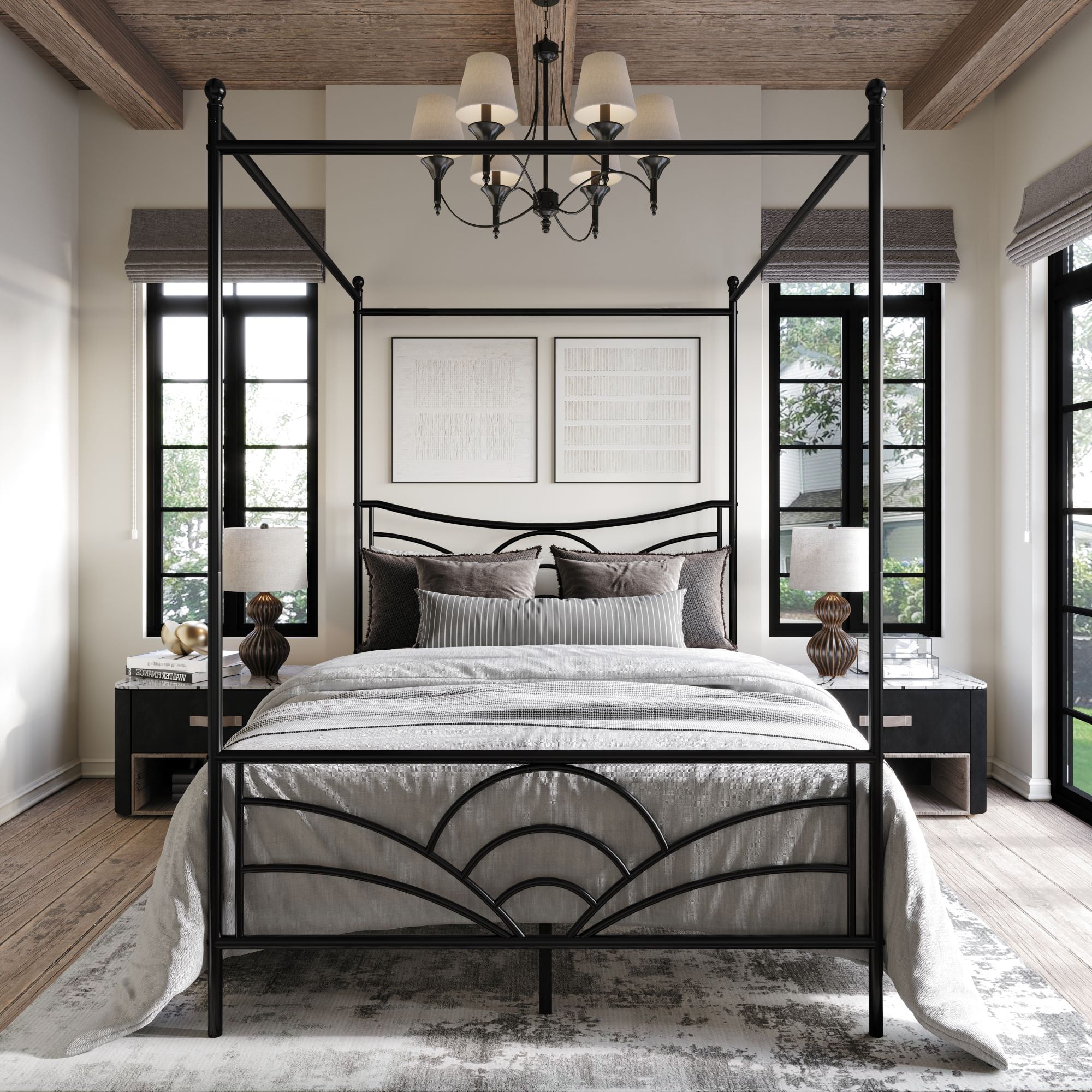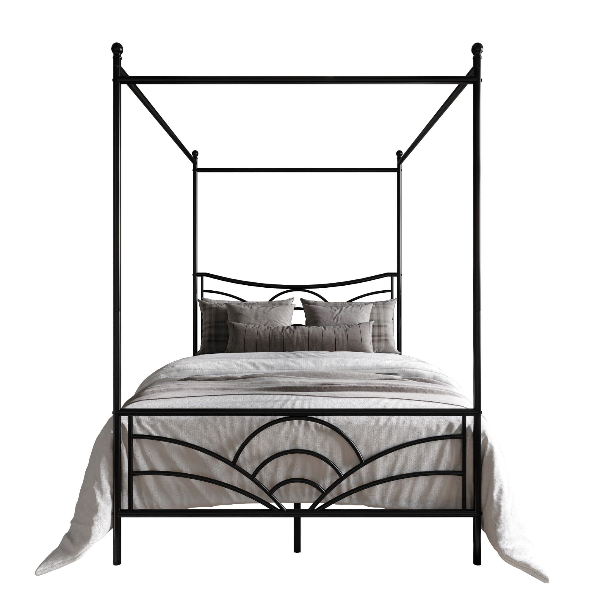 This platform canopy bed’s simple and clean-lined style will make a statement in any bedroom. The canopy bed features four posters, allowing you to wrap it in lovely fabrics to give your private space an elegant look. The rectangular headboard and footboard, created with soft arches, lend a modern aesthetic. There is no need for a box spring, and the central leg provides additional stability. To suit your preferences, a variety of hues are available in a neutral finish.