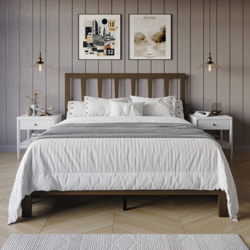 - Crafted from high-quality wood that providing long-lasting support for a restful night’s sleep. This bed frame combines natural wood grain beauty with clean lines and a durable structure, creating an inviting and modern aesthetic that enhances any room.