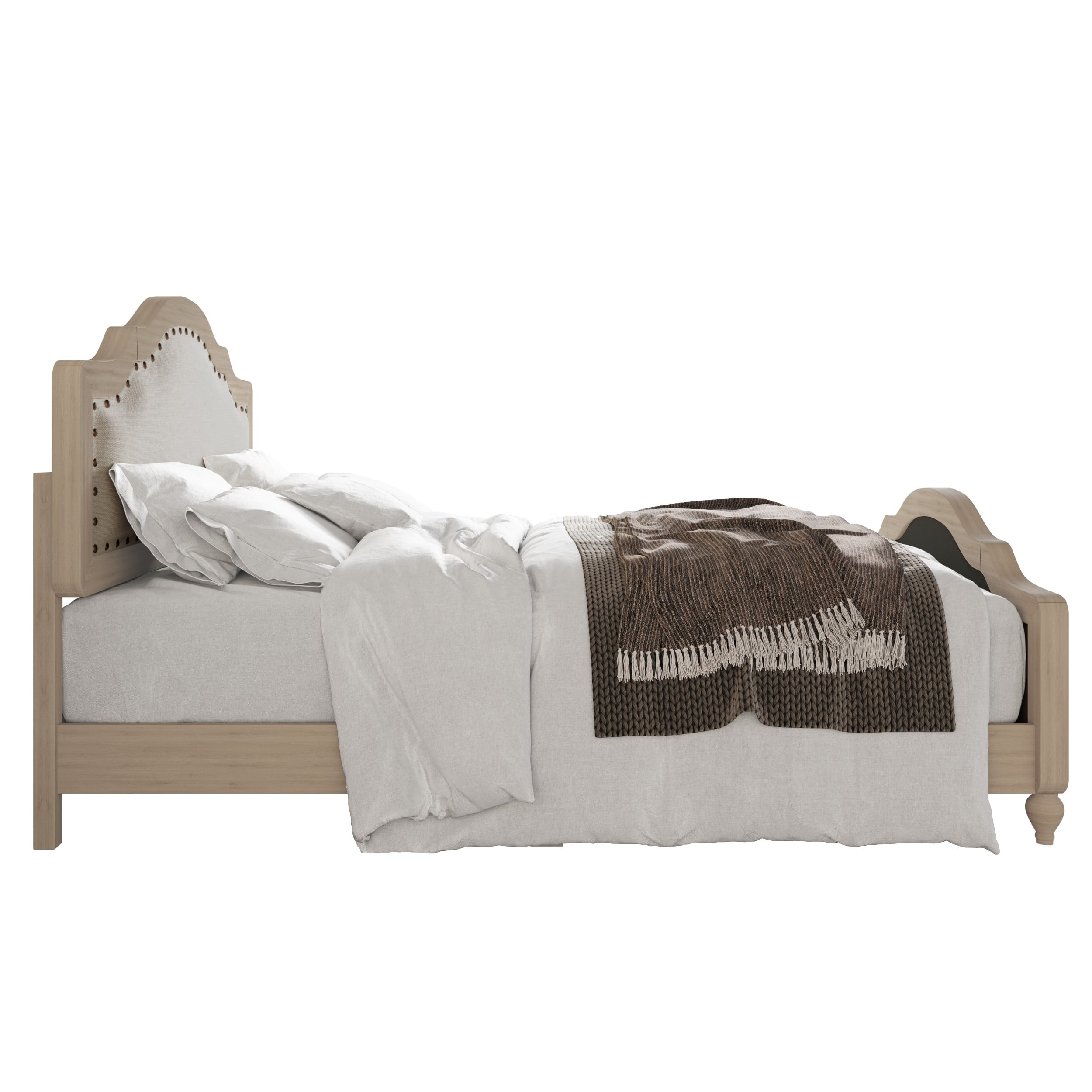 • Graceful curves, clean lines, and black brass nailhead detailing create a refined, sophisticated look that complements both traditional and transitional bedroom styles.