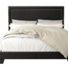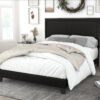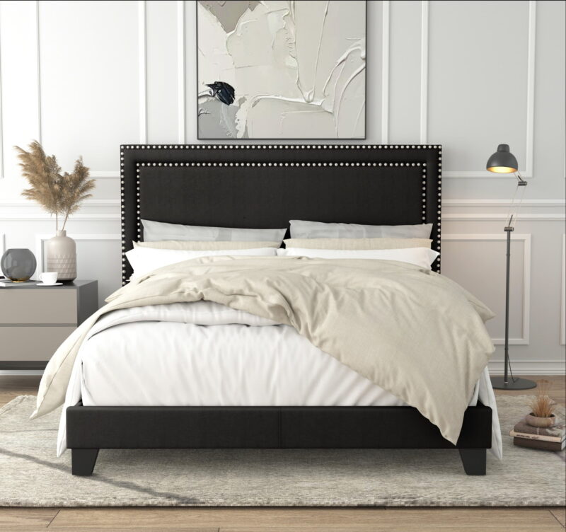Home Design Ocala Full Upholstered Panel Bed Frame with Padded Headboard and Sturdy Support, Black, Easy Assembly