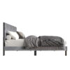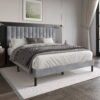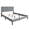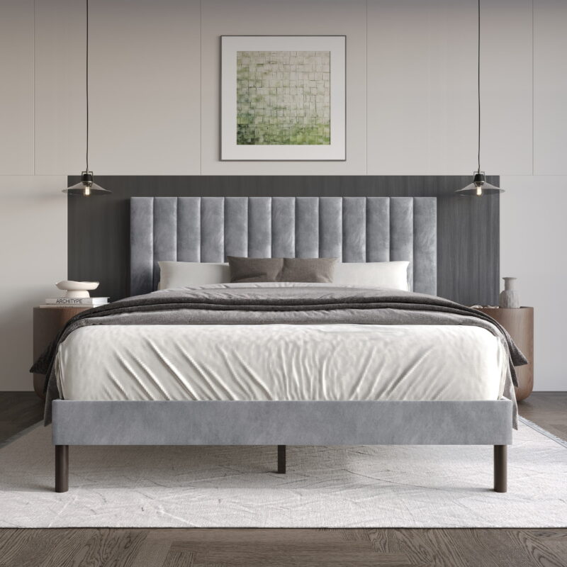 This upholstered panel bed showcases modern, clean lines and minimalist detail that enhance any space. The headboard is filled with foam and designed with classic vertical channel tufting, wrapped in luxurious plush velvet, and provides comfort and relaxation for leaning up against while you read before bed. This bed required a box spring and was sold separately. Four bed sizes are available to choose from, along with two color options, black and gray, to match your preferences.