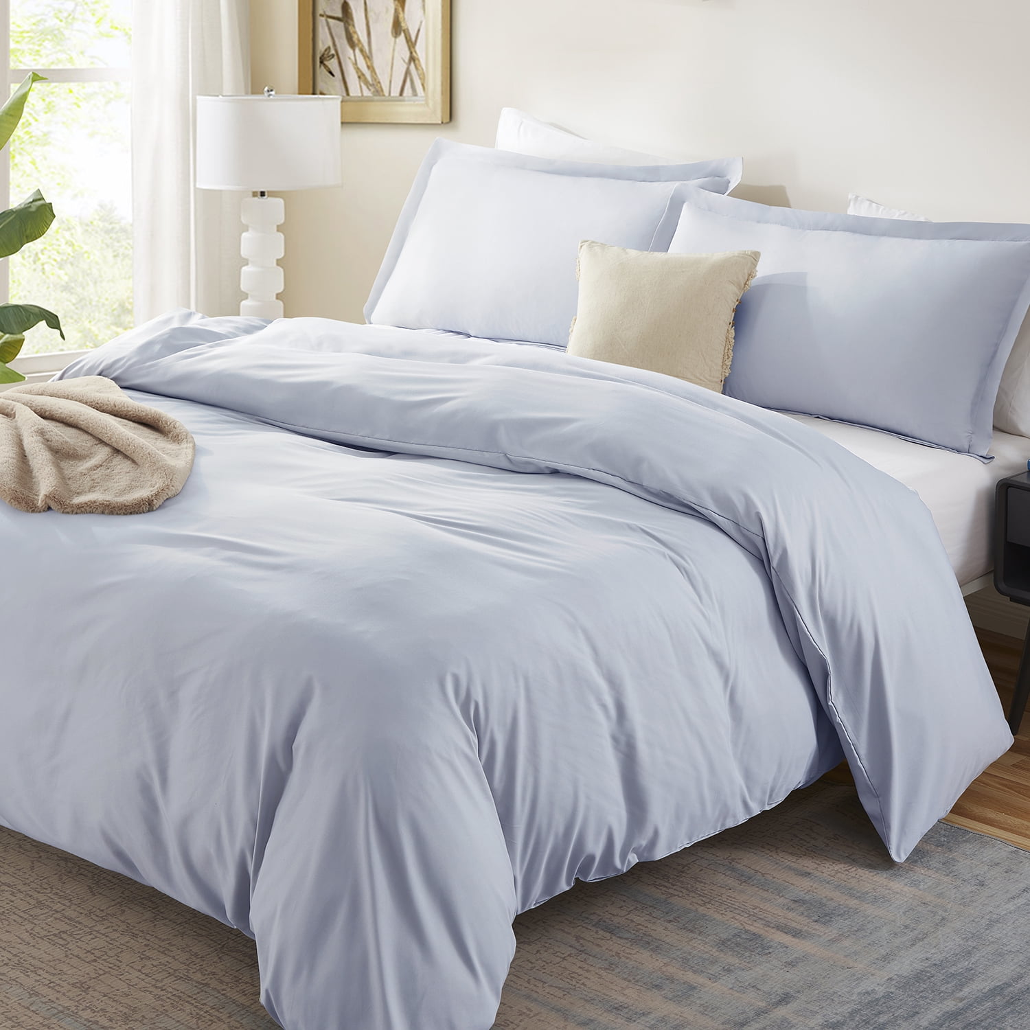 Upgrade your bed instantly with this super silky-soft luxury duvet cover set (comforter/insert not included) for a fresh, hotel-style look and feel. Designed to slip easily over your comforter or blanket with a secure closure, it helps protect your bedding—especially since washing a full comforter can be complicated and time-consuming. This 3-piece set includes 1 duvet cover and 2 matching pillow shams, making it easy to refresh your bedroom and switch colors or styles from season to season without replacing your comforter.