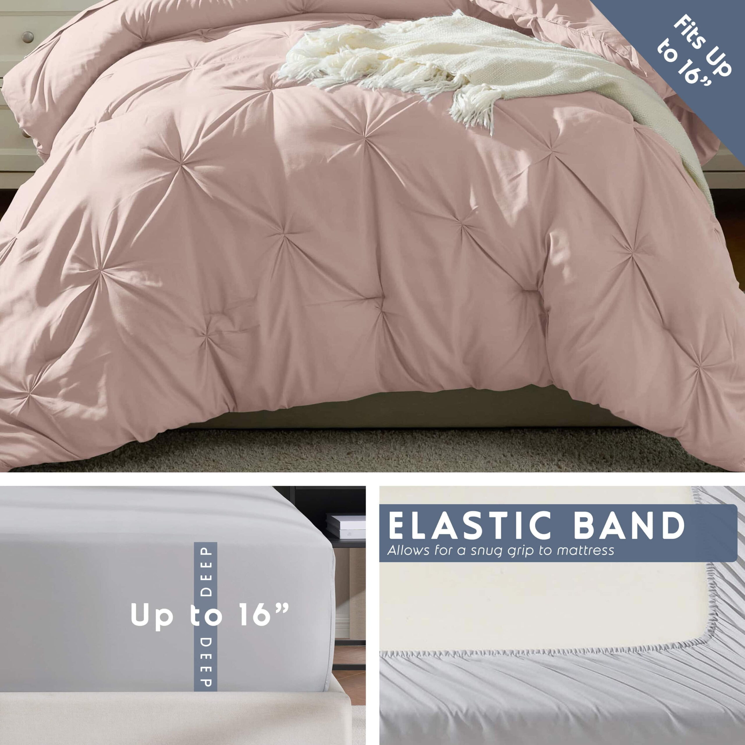 Indulge in the plush comfort and elegant design With our Virtu 7 Pieces comforter Set Offering a supremely soft feel and a luxurious layer of breathable warmth, this lightweight Bedding Set is an ideal choice for College and all year-round use, effortlessly transitioning through the seasons. The Comforter is reversible which adds visual and textural appeal, enhancing any bedroom’s sophisticated charm. Crafted from 100% polyester for durability and easy care, the Luxurious Bed in a Bag promising a complete and cohesive look. Beauty sleep begins with luxurious materials and sumptuous details to maintain its pristine appearance and maximize service life. Refresh the look of your bedding with our Incredibly Soft Comfy 7 Piece Sheet Set. Beautiful super soft sheet sets that feel great.