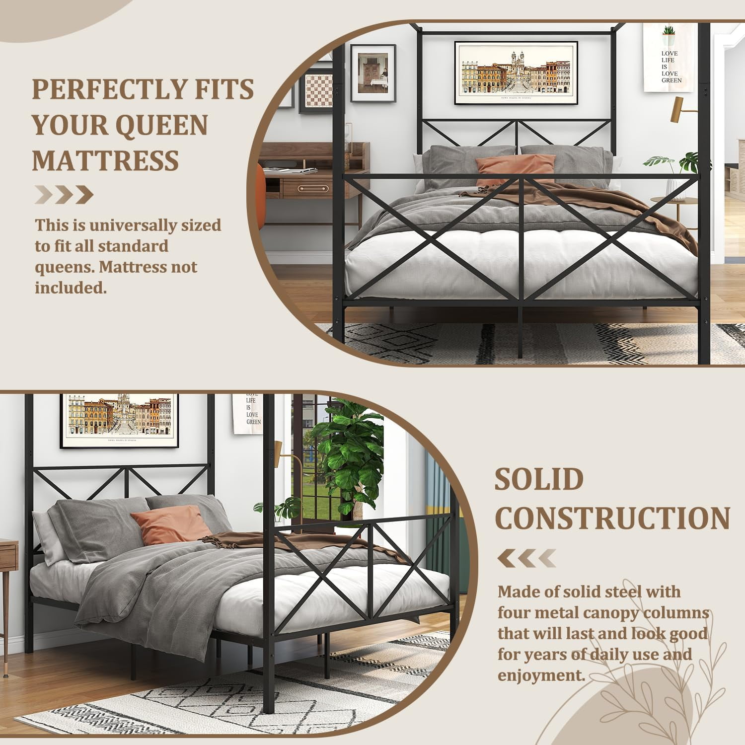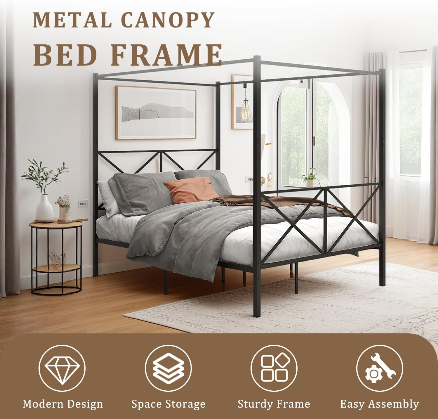 - STURDY STEEL CONSTRUCTION-supports up to 660 pounds of weight. This gives you a great night’s sleep without the shaking,creaks,and vibrations of lesser frames that keep you awake. Made of solid steel with four metal canopy columns that will last and look good for years of daily use and enjoyment. Never any fear of bending or warping