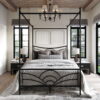 This metal platform bed is an elegant bed frame that pairs perfectly with a variety of home interiors. The vintage look headboard also adds an artistic temperament and character to your bedroom.