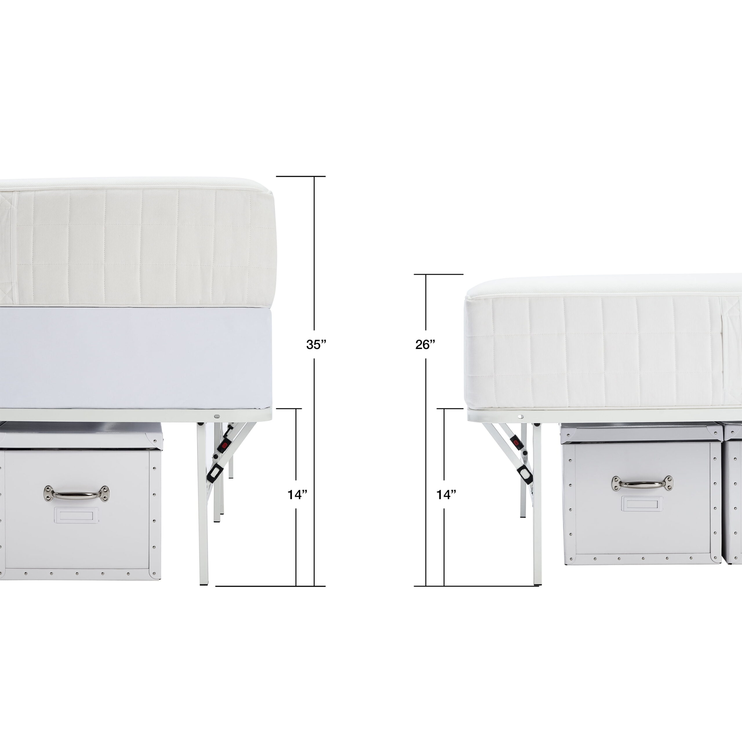 • Twin XL: 80″L x 39″W x 14″H (600 lb. weight capacity)