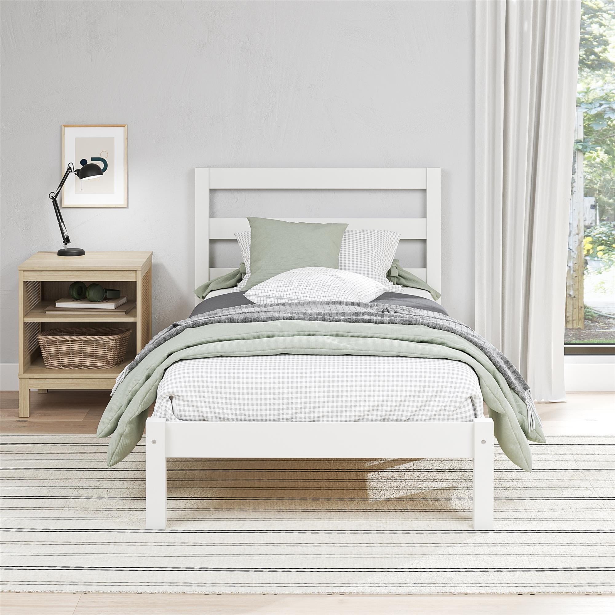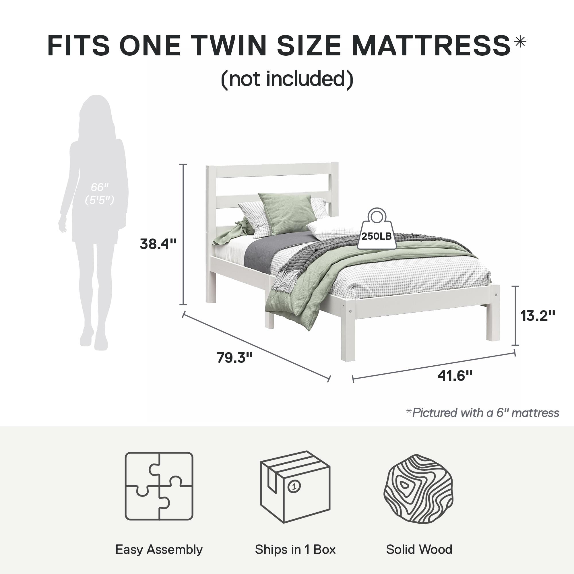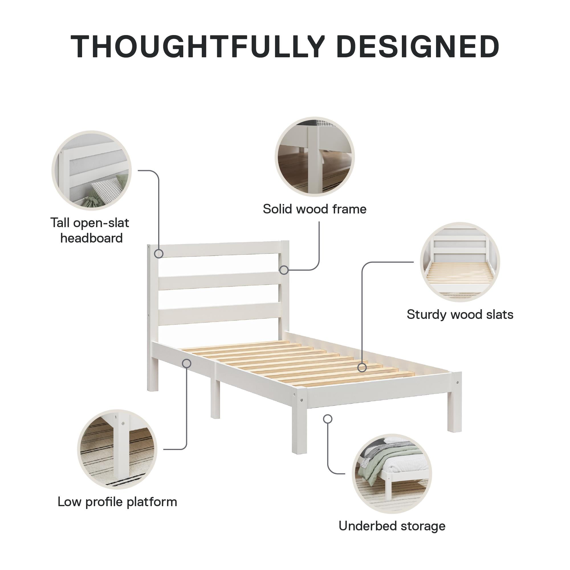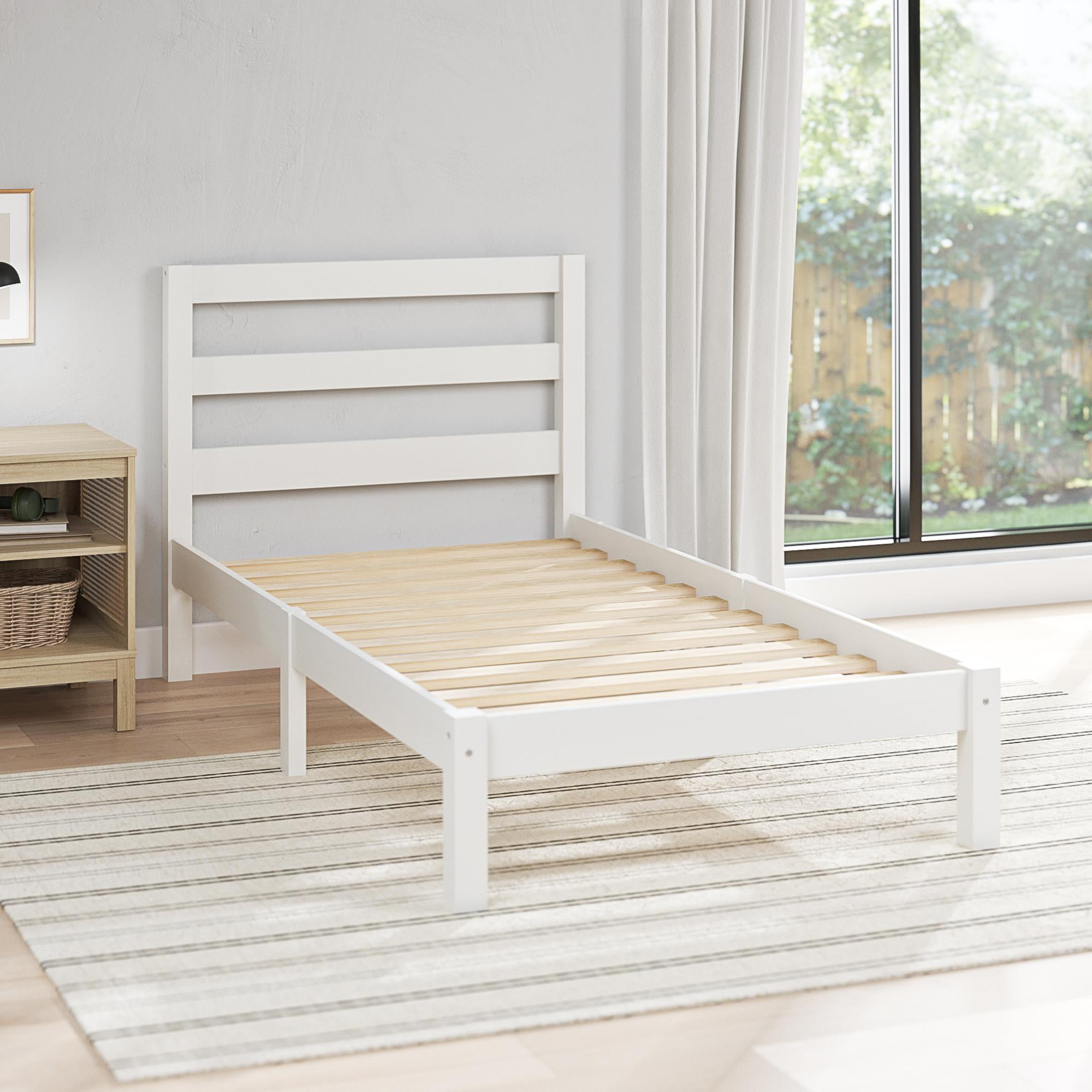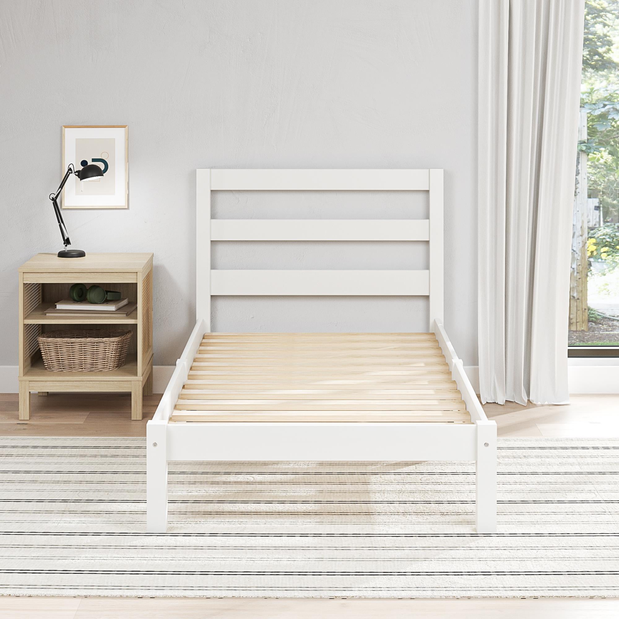 - TRADITIONAL SOLID WOOD BED FRAME: Made from durable solid pine wood, this twin-size platform bed features a white finish and a slatted headboard design that complements classic and transitional interiors