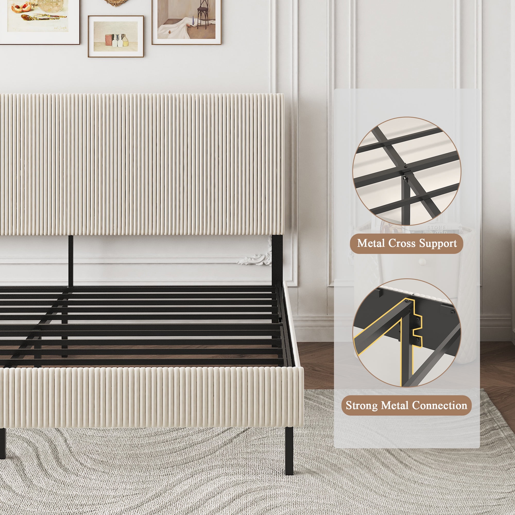 HEAVY-DUTY METAL CONSTRUCTION: Built with a strong iron frame, this platform bed is designed to last. The robust construction ensures durability and strength, providing a solid foundation for your mattress, ideal for long-term use.