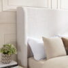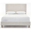 - Noble House Hayden Queen Upholstered Bed Frame, 54″ Tall Chenille Headboard with Curved Wingback, Ivory: