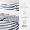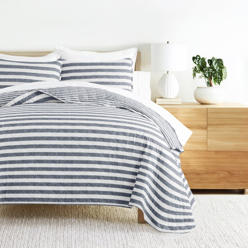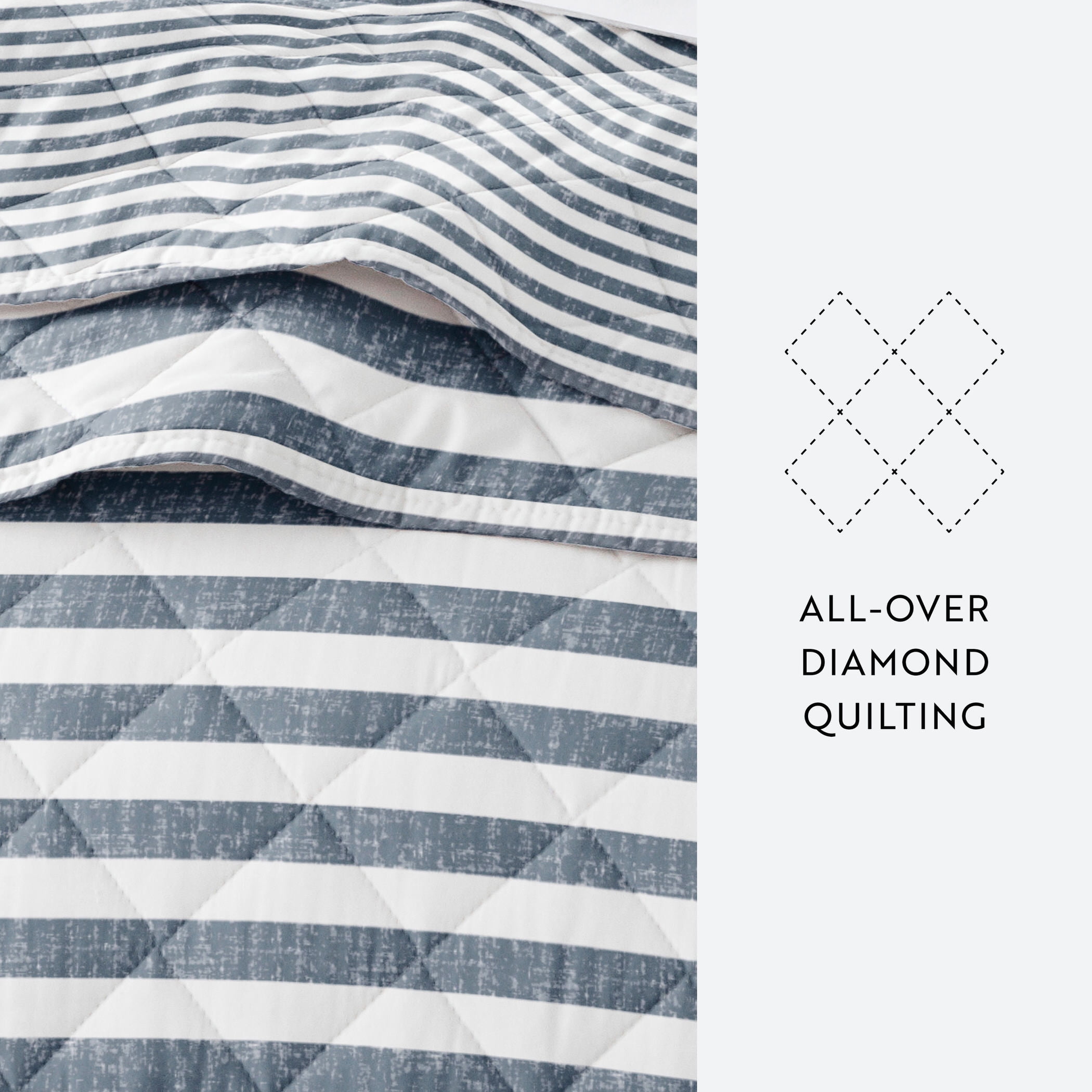 Noble Linens 3-Piece Dusk Blue Classic Stripe Reversible Quilt Set, Queen