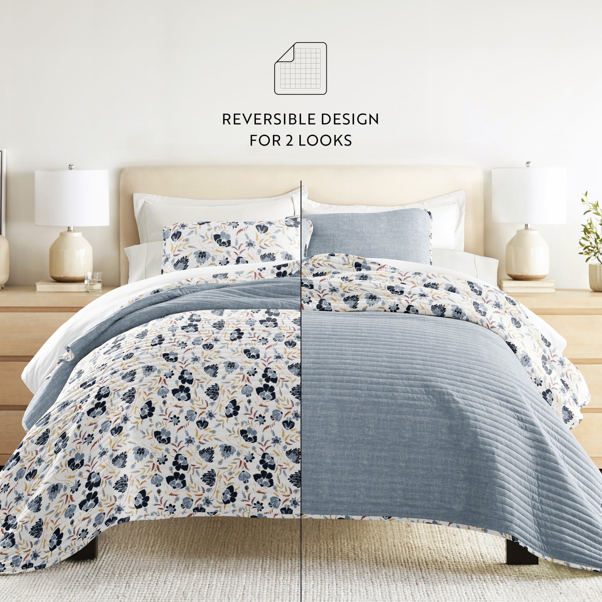 • TWIN/TWINXL: 1 quilt (70″ x 90″) and 1 pillow sham (20″ x 26″)