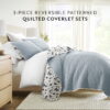 Noble Linens 3-Piece Light Blue French Jacobean Reversible Quilt Set, Queen